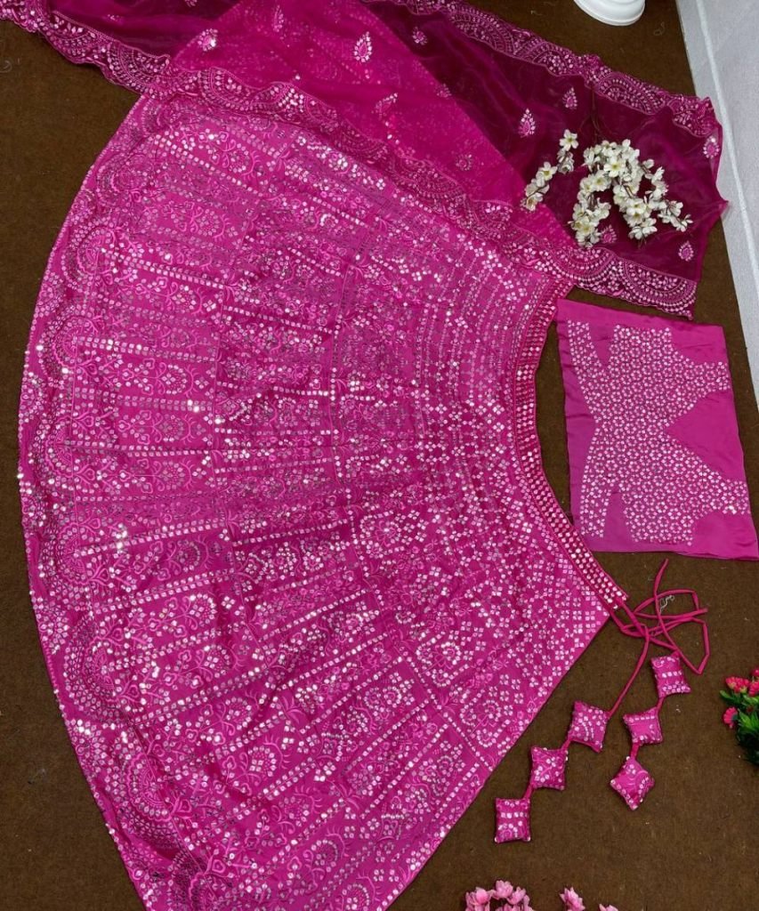 Lehengas Work : Heavy Embroidered 9 Mm Sequence Work 3 Mtr Flair Can-vas, Can- Can, Fancy Latkan