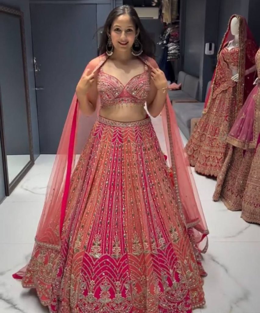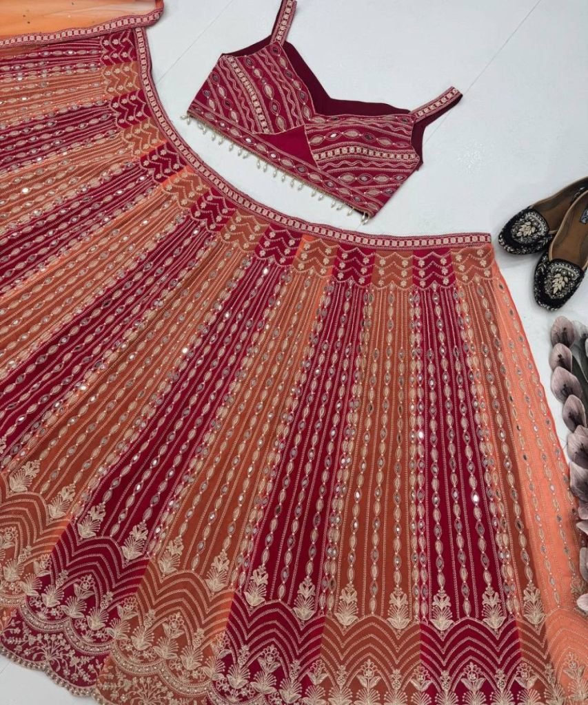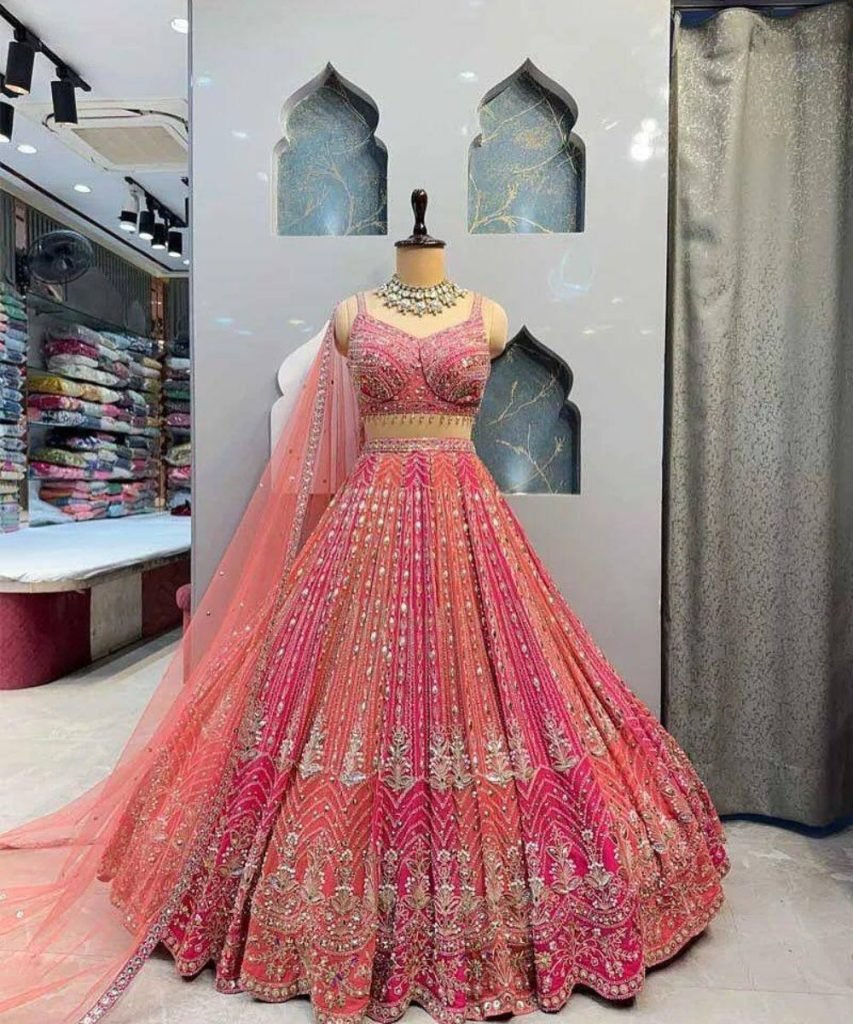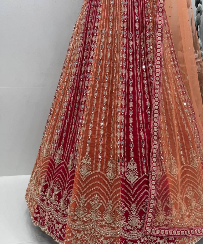 Lehengas Work : Heavy Embroidery Coding Sequence Work With Real Mirror Hand Work Can- Can Can-vas