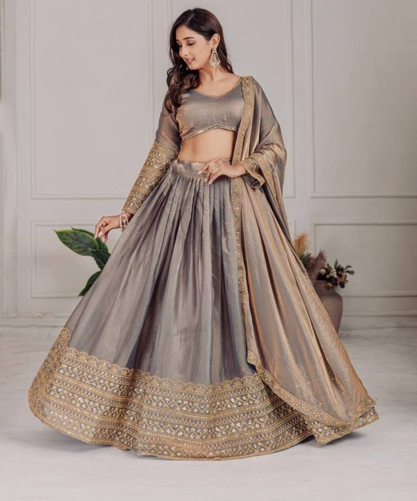 Lehengas Work : Heavy Embroidery Coding Sequence Work With Can-vas, Can- Can