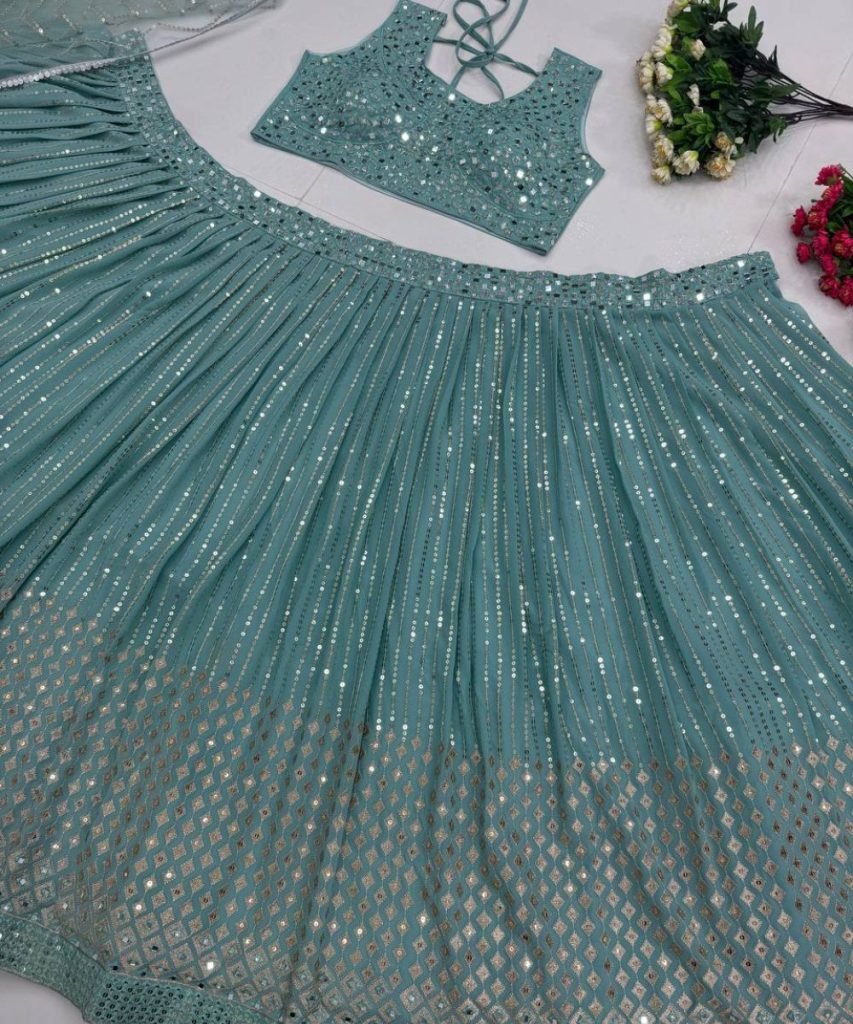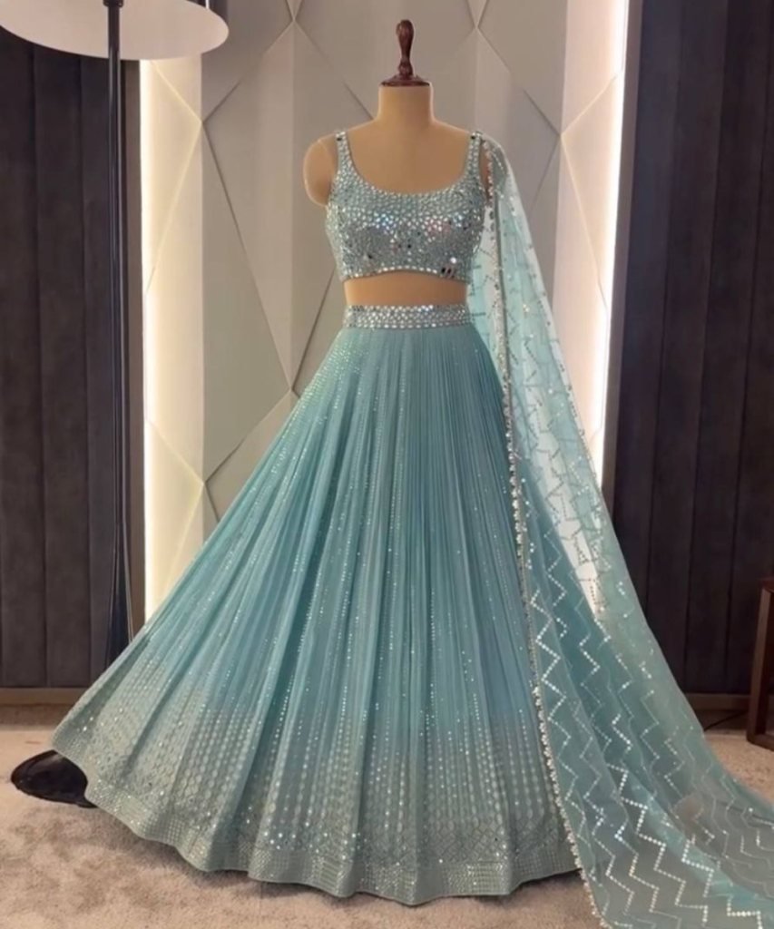 Lehengas Work : Heavy Embroidered Sequnce Work With Real Mirror Hand Work 3 Mtr Flair Can-vas, Can- Can