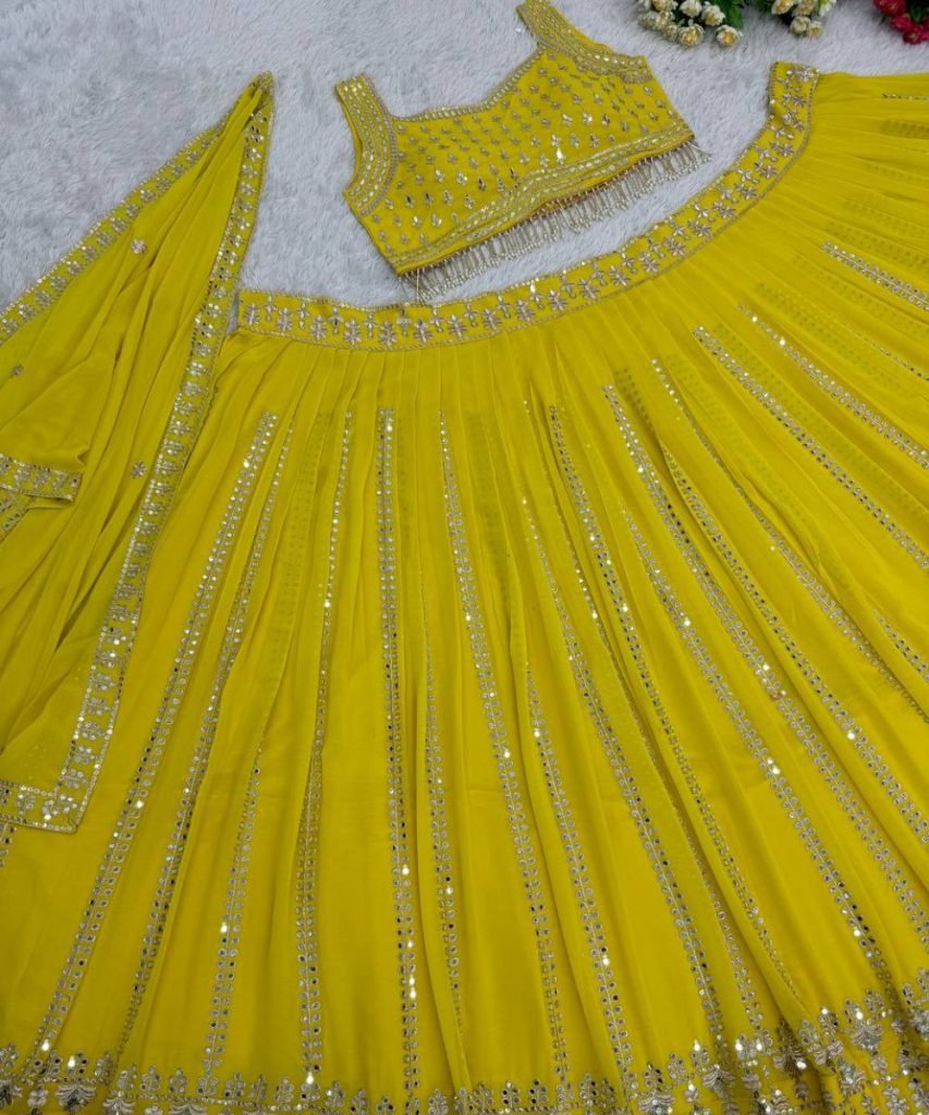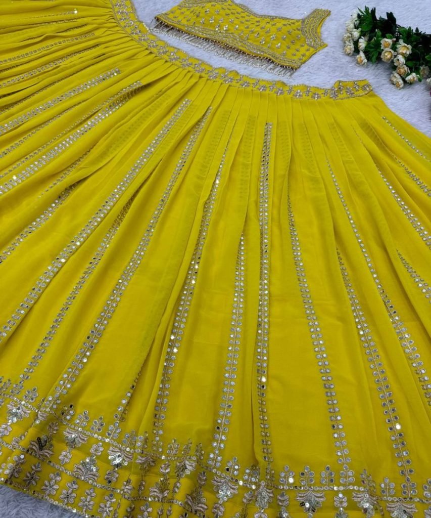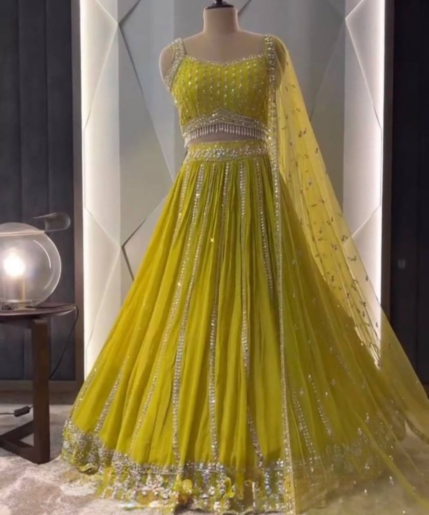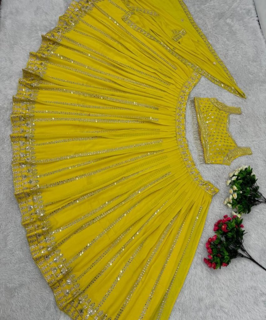Lehengas Work : Heavy Embroidered Sequnce Work With Real Mirror Hand Work 3 Mtr Flair Can-vas, Can- Can