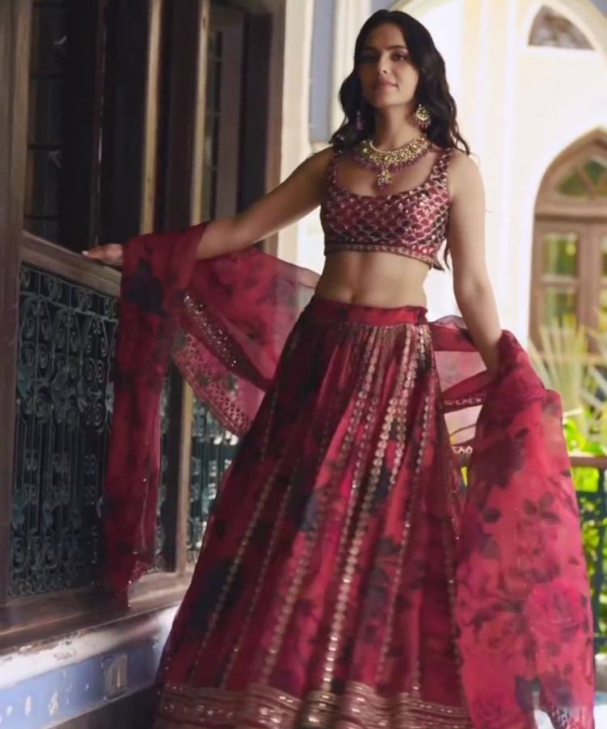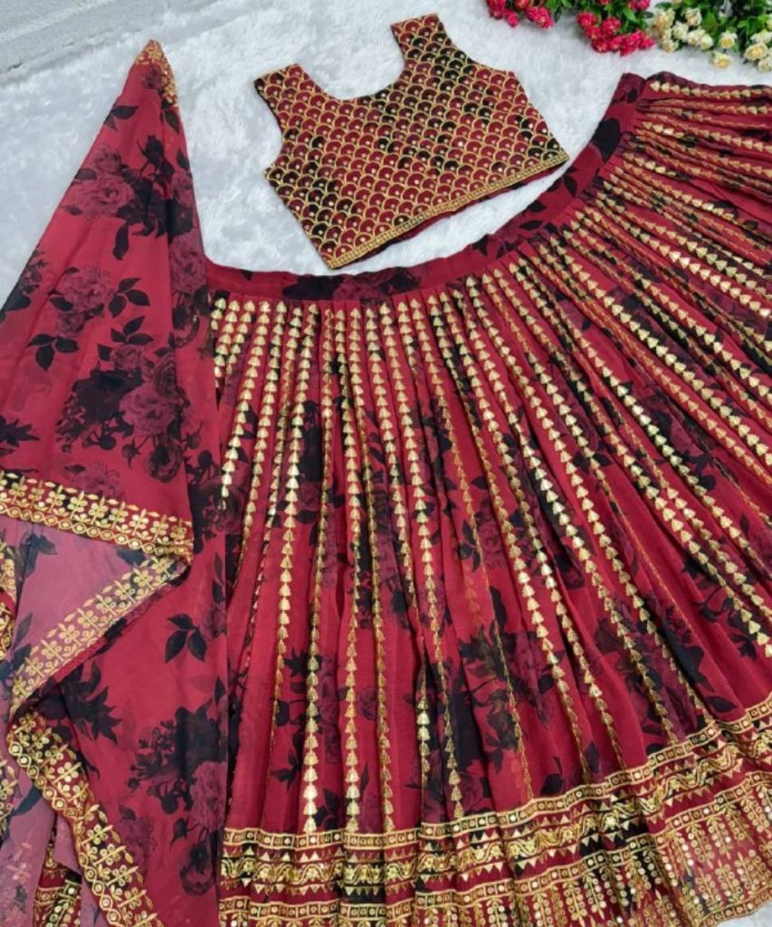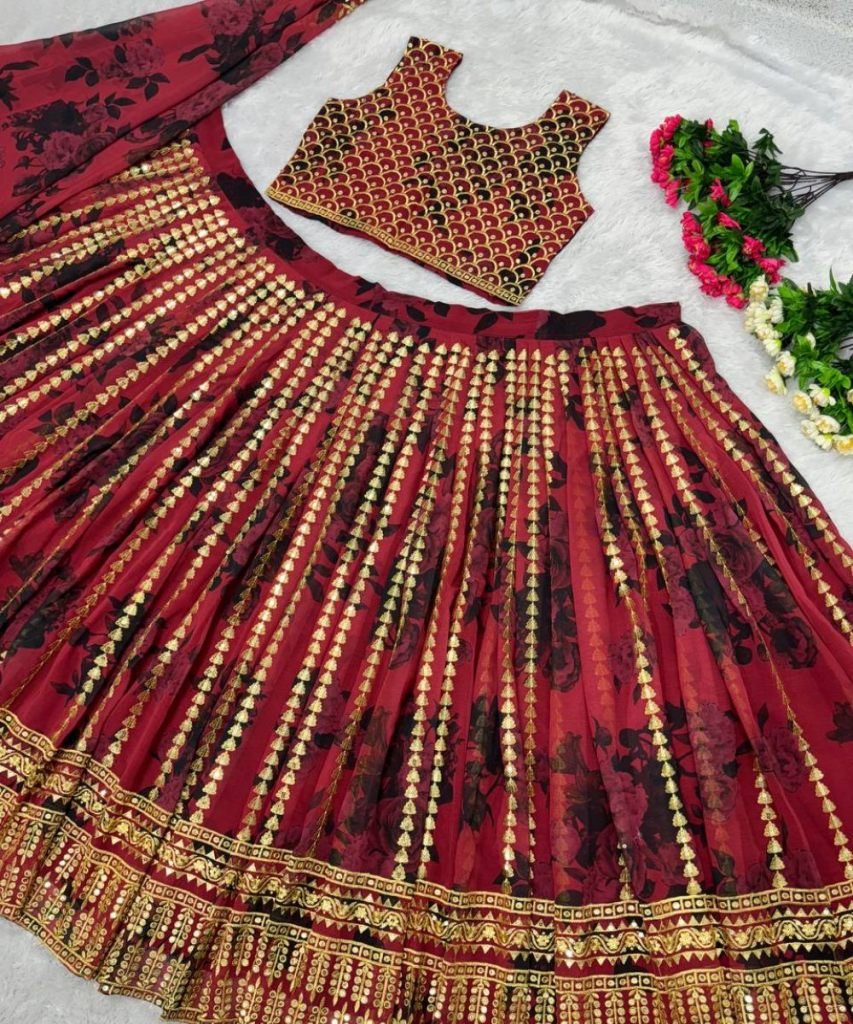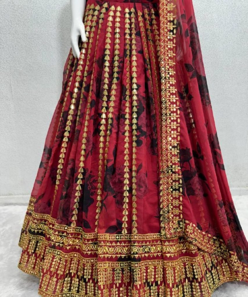 Lehengas Work : Heavy Embroidered Sequnce Work With Digital Print 3 Mtr Flair