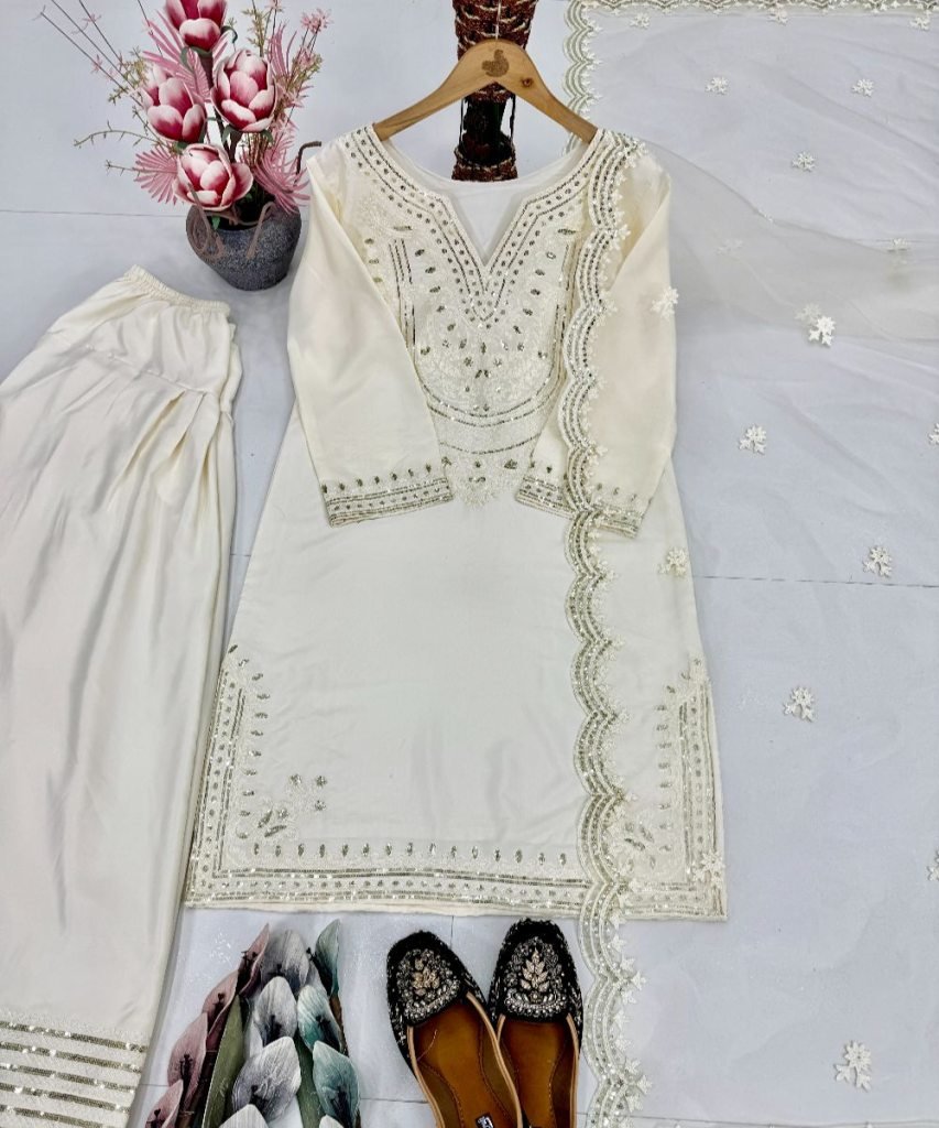 #DUPATTA WORK : EMBROIDERY CHIN SEQUENCES WORK LESS