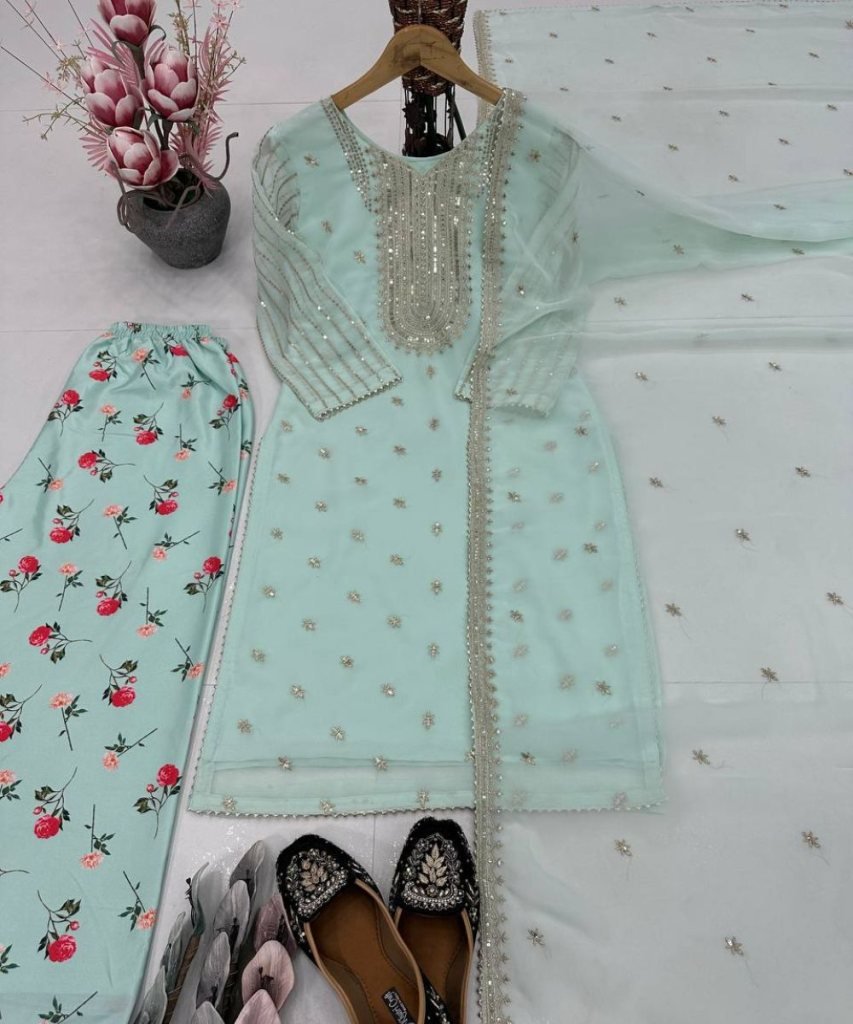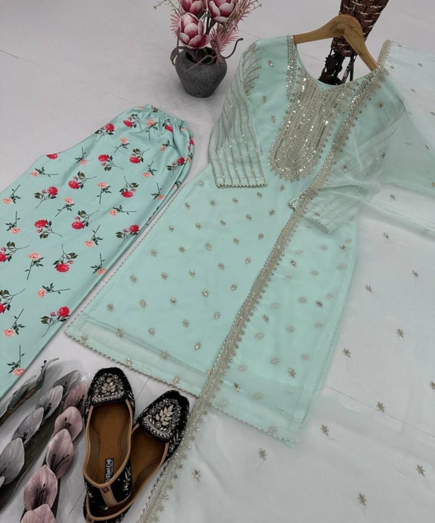 Dupatta Work : Full Embroidered Sequence Work With Fancy Lace