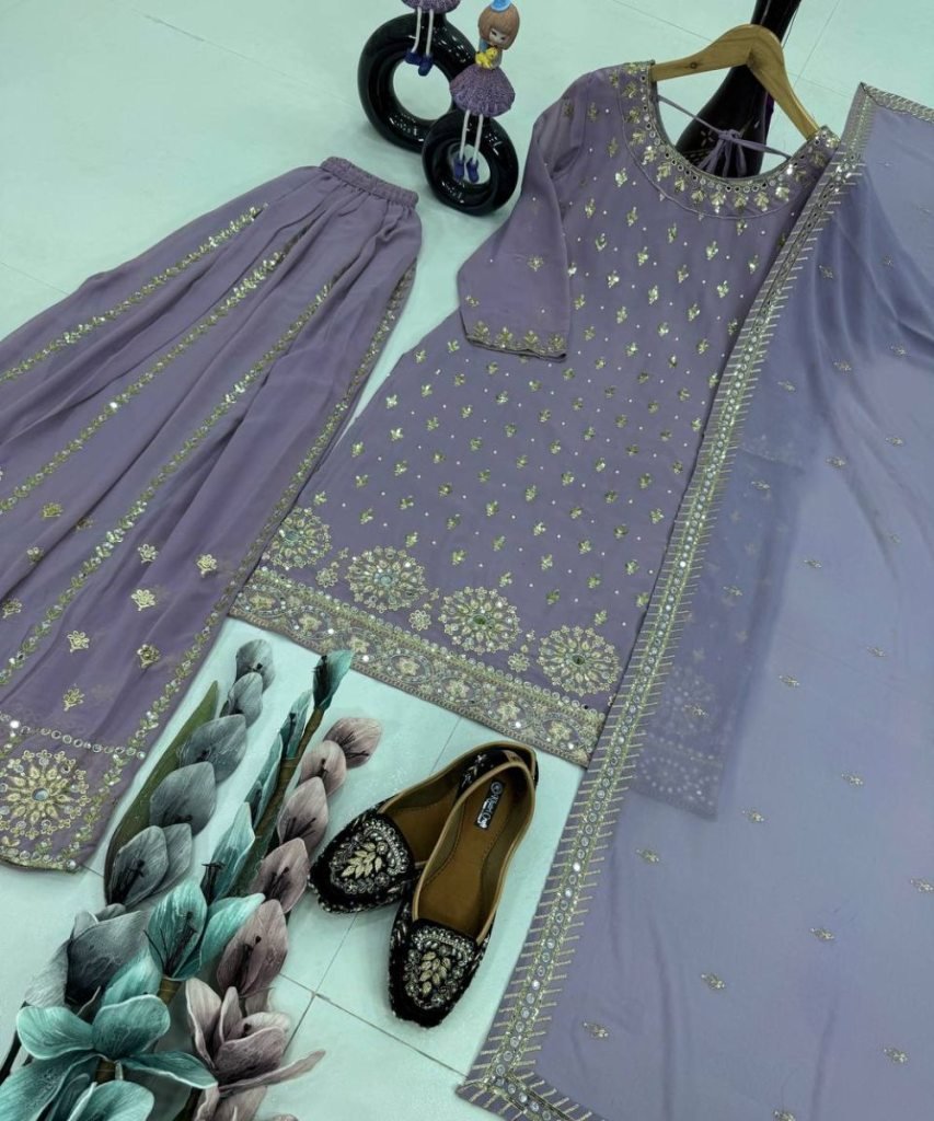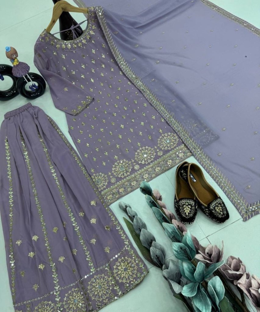 Palazzo Work: Embroidered Sequences Work With Real Mirror Hand Work