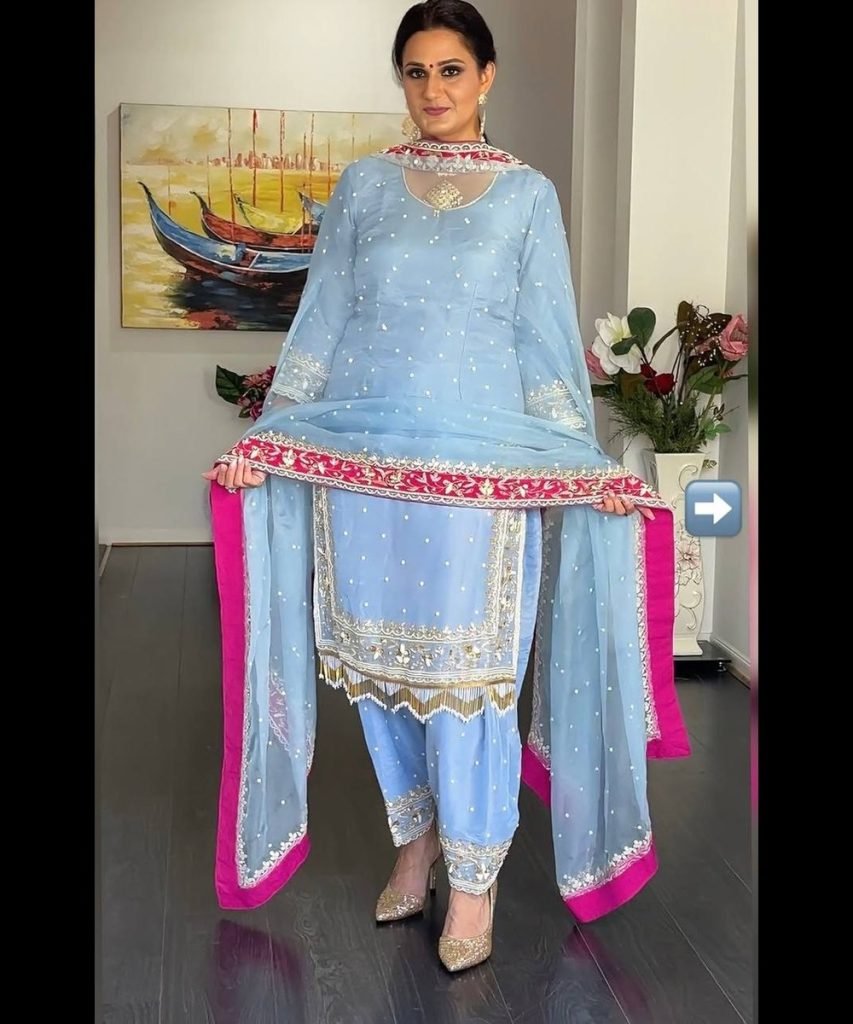 #PLAZZO WORK: EMBROIDERY SEQUENCES WORK WITH PERAL HAND WORK