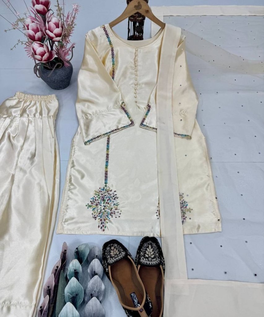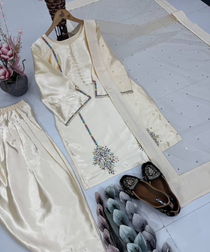 Farshi Plazzo Fabrics :heavy Natural Creap
