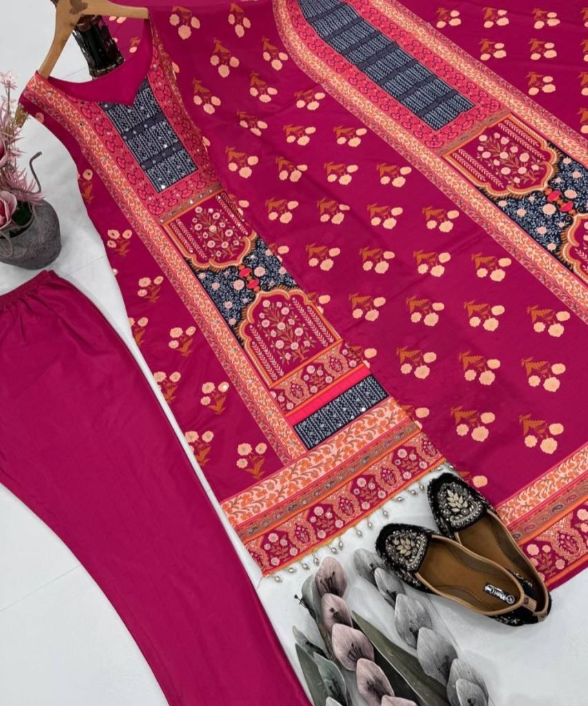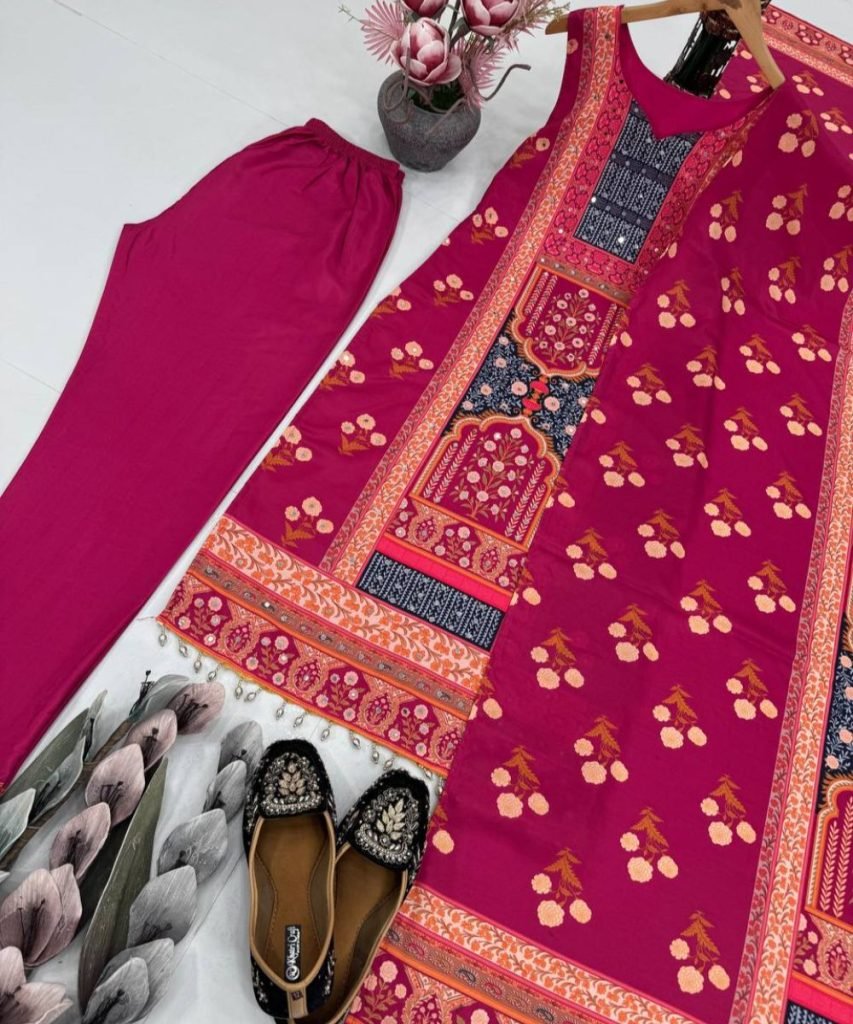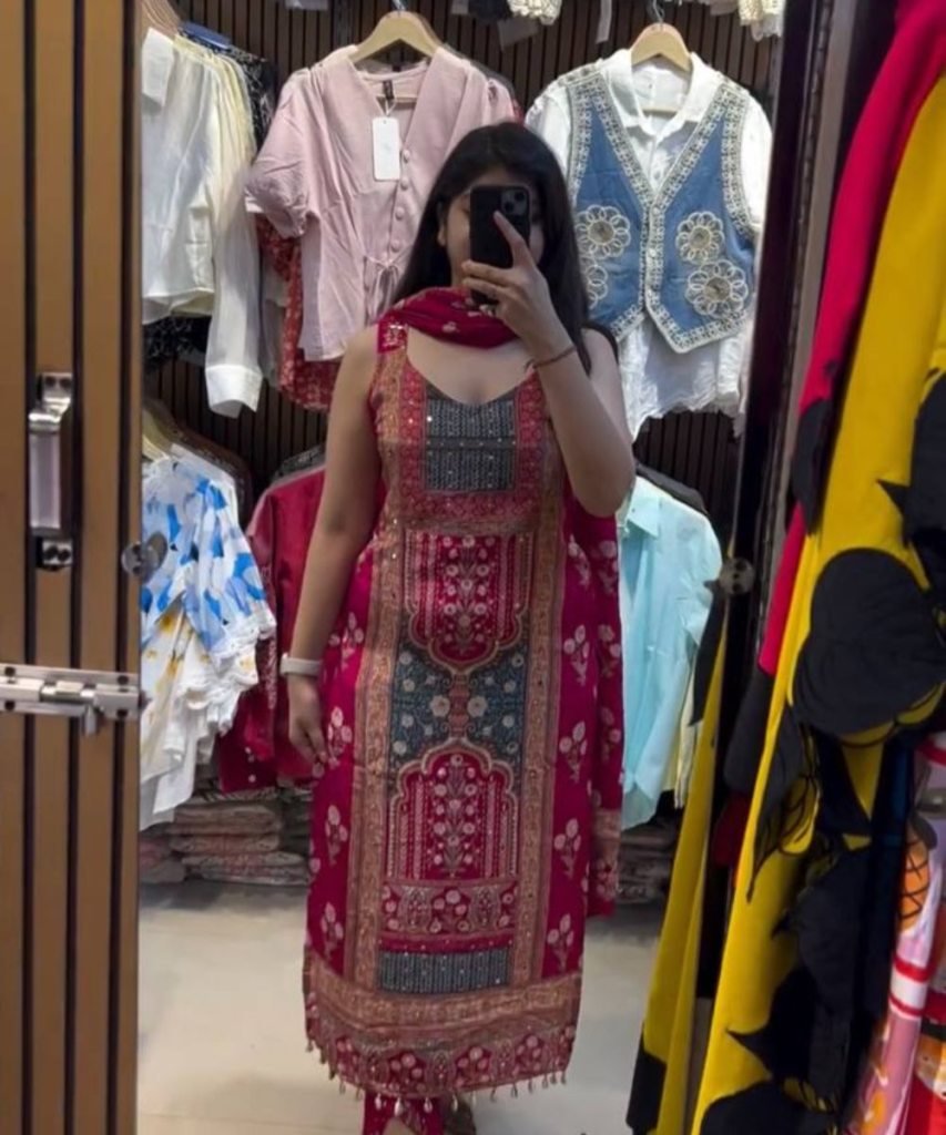 • Designer Heavy Silk Digital Printed Salwar Suit with real mirror hand work