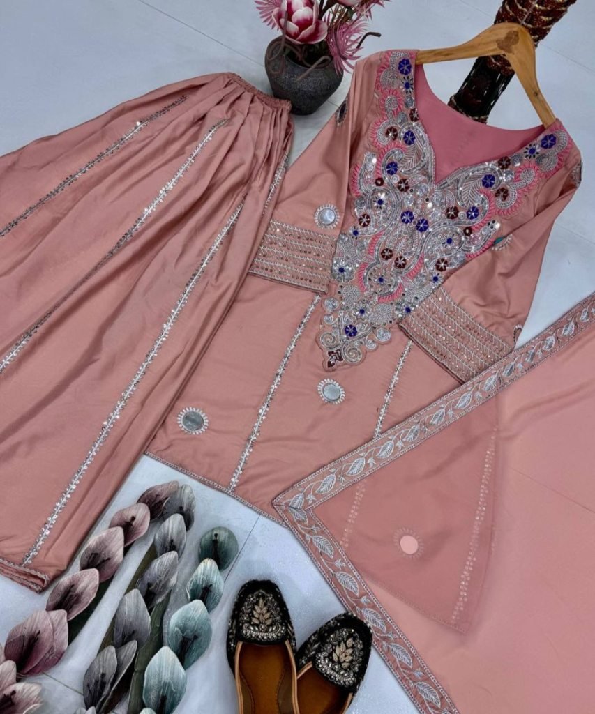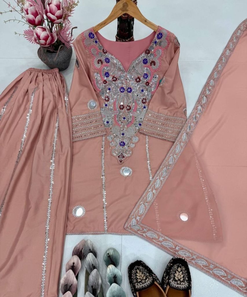 FABRICS DETAIL #TOP FABRICS : HEAVY NATURAL CREAP #TOP WORK : *HEAVY EMBROIDERED SEQUENCE WORK WITH REAL MIRROR HAND WORK* # TOP SIZE :FULL STITCHED MAX UP TO 44 #TOP LENGTH :36 INCHED #TOP INNER : MICRO COTTON #SHARARA FABRICS : HEAVY NATURAL CREAP #SHARARA LENGTH: 39 INCHED #SHARARA SIZE: FULL STITCHED ( FREE SIZE ) #SHARARA WORK: EMBROIDERED SEQUENCE WORK #DUPATTA FABRICS: HEAVY FUAX GEORGETTE #DUPATTA WORK:*FOUR SIDE EMBROIDERED SEQUENCE WORK LACE BODAR* #DUPATTA SIZE: 2.10-2.20 MTR