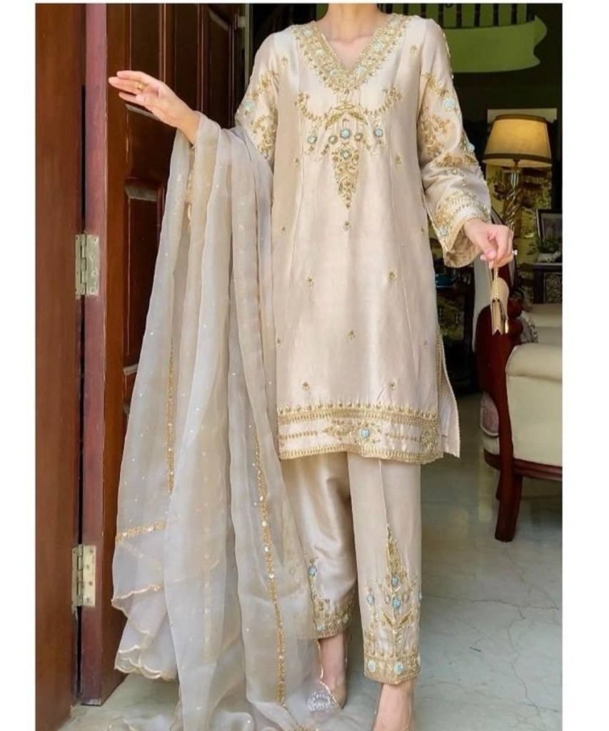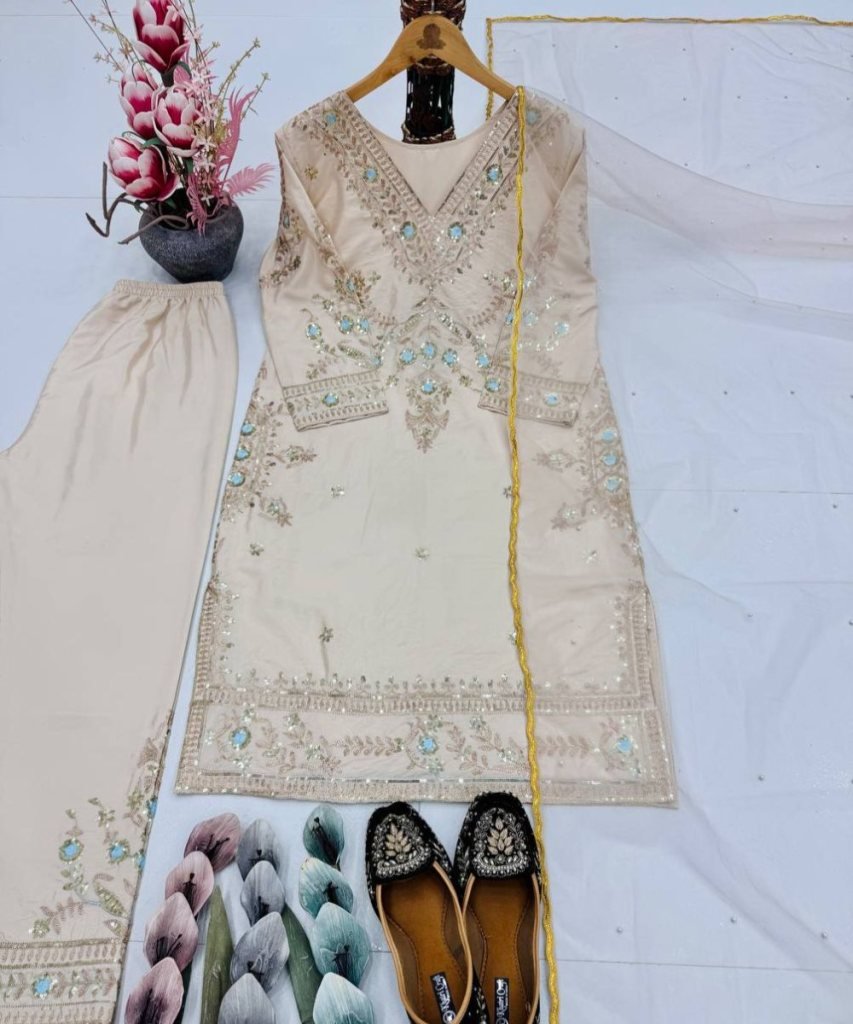 #TOP WORK : *EMBROIDERY CHINE SEQUENCES BOTH SIDE WORK*
