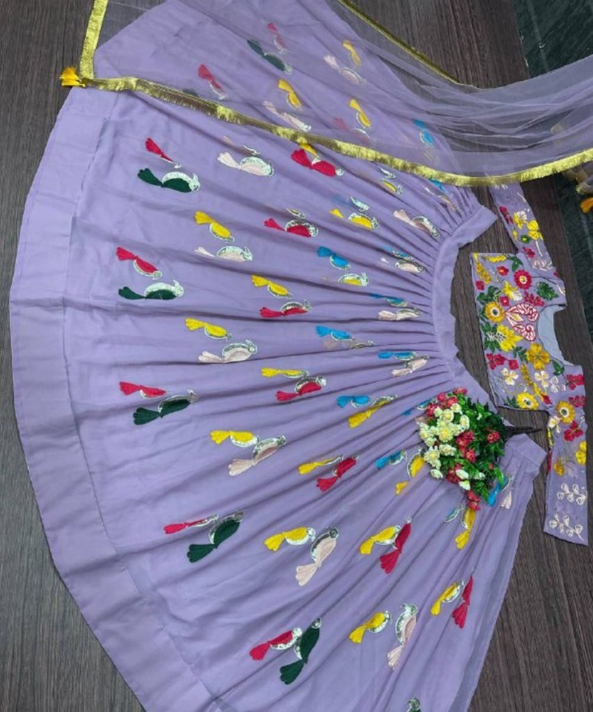 Free Size Semi Stitched Lehengas With Unstitched Choli Max Size 44 ; Lehengas Lenghth 42 Inches.