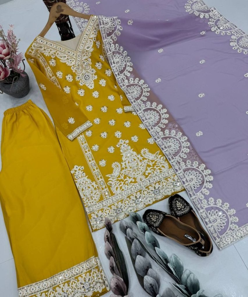 Palazzo Work: Embroidery Sequences Work With Real Mirror Hand Work