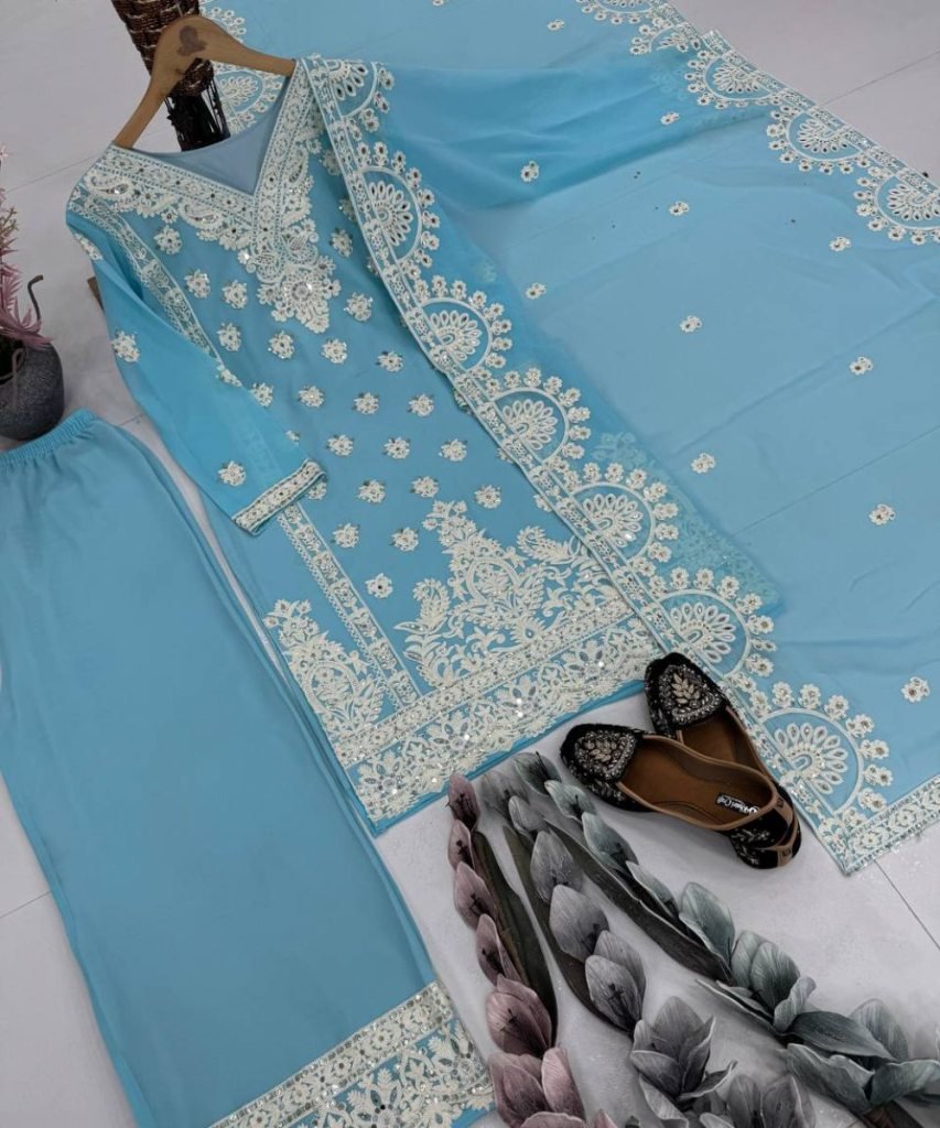 Palazzo Work: Embroidery Sequences Work With Real Mirror Hand Work
