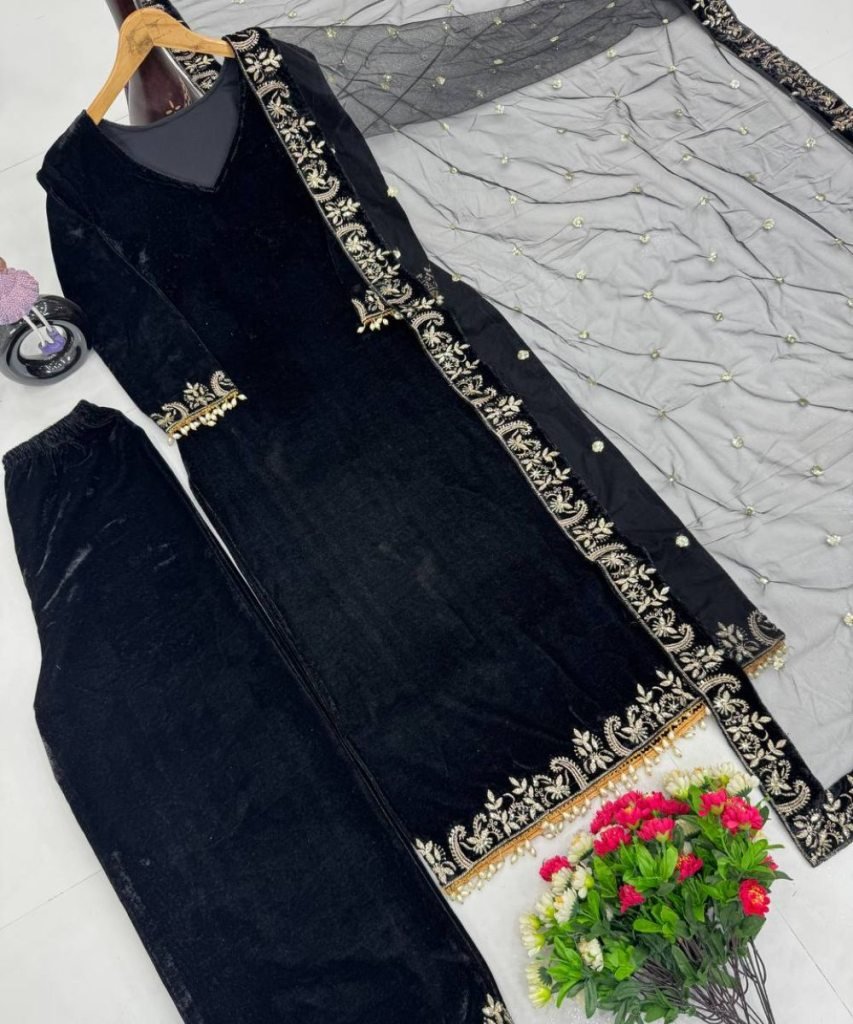 Dupatta Work : Embroidered Sequence Work With Velvet 4 Side Less Boder