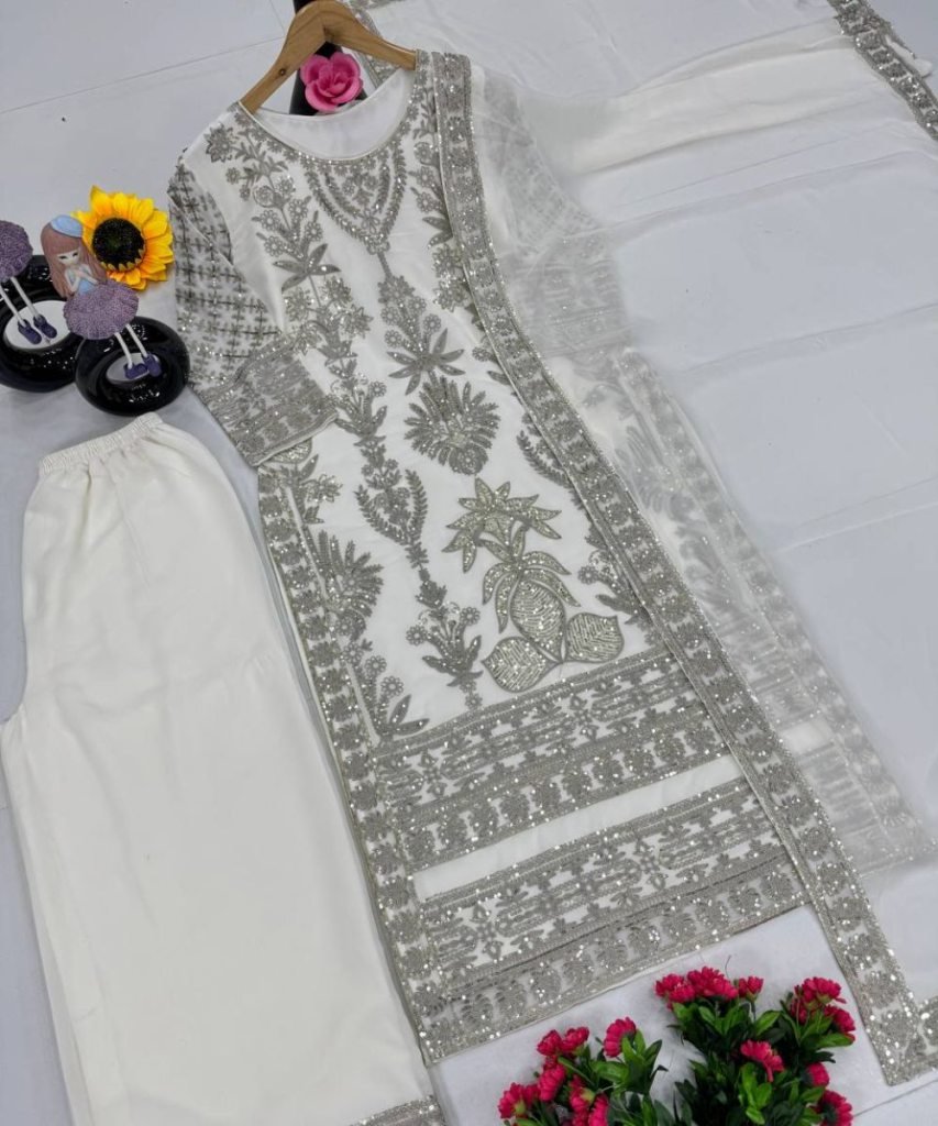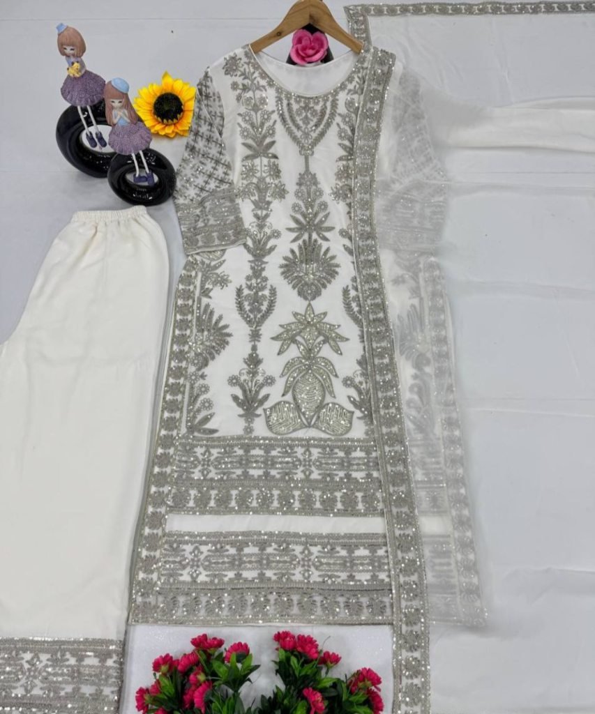Dupatta Work : Embroidered Sequence Work 4 Side Less Boder