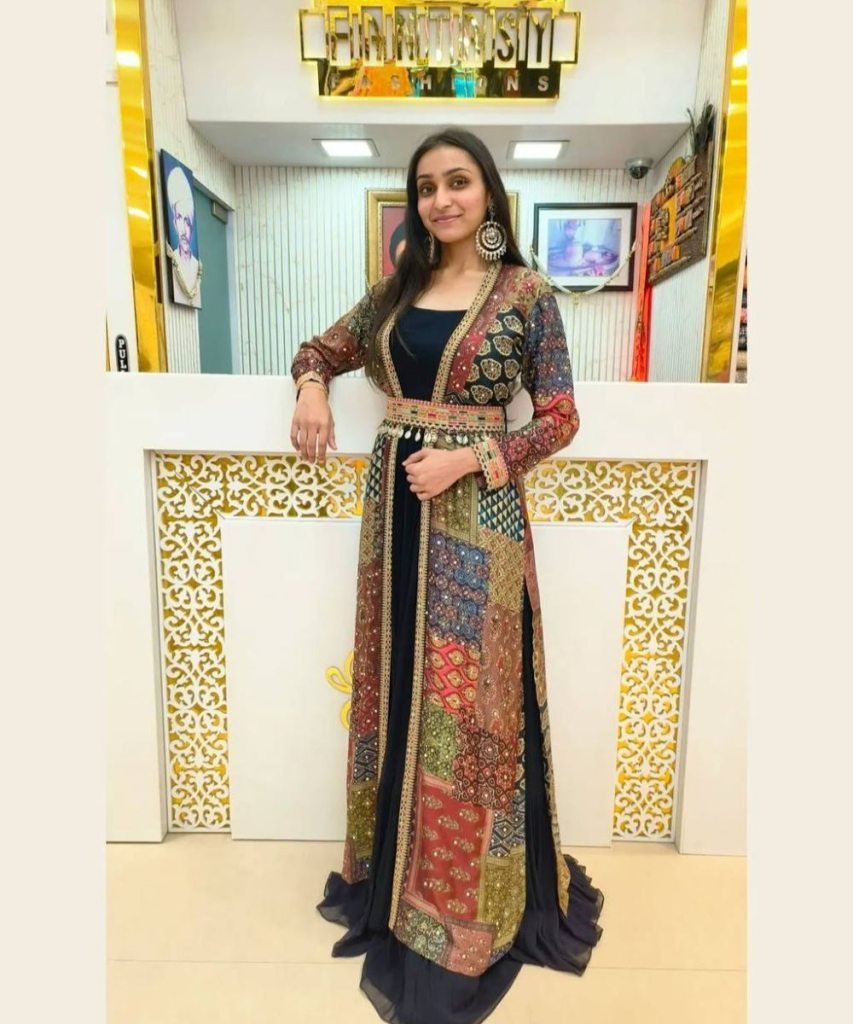 Koti Work : Fancy Digital Print With Chine Stitched Lace Bodar And Fancy Beltp
