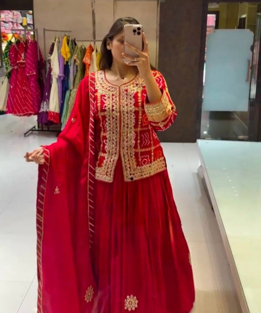 Dupatta Work : Embroidery Coding Sequence Work With Four Side Fancy Lace Bodar