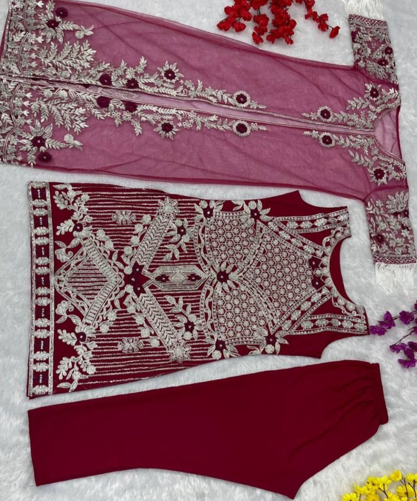 Koti Work : Embroidered Sequence Work With Fancy Sleeves Less