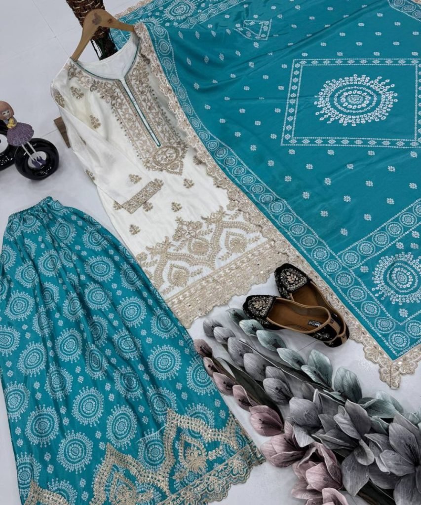 Sharara Work : Digital Print With Embroidered Sequence Coding Work