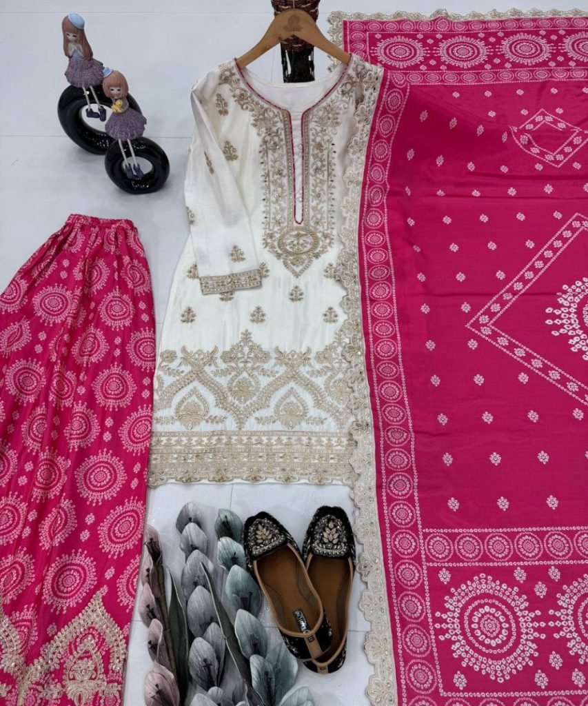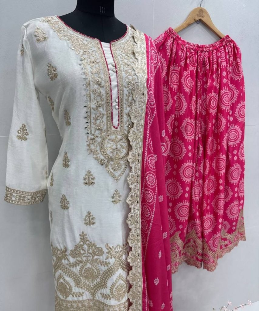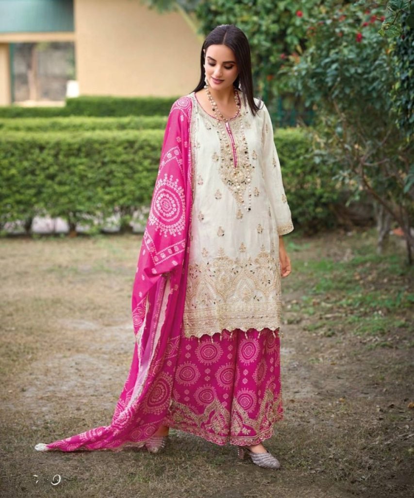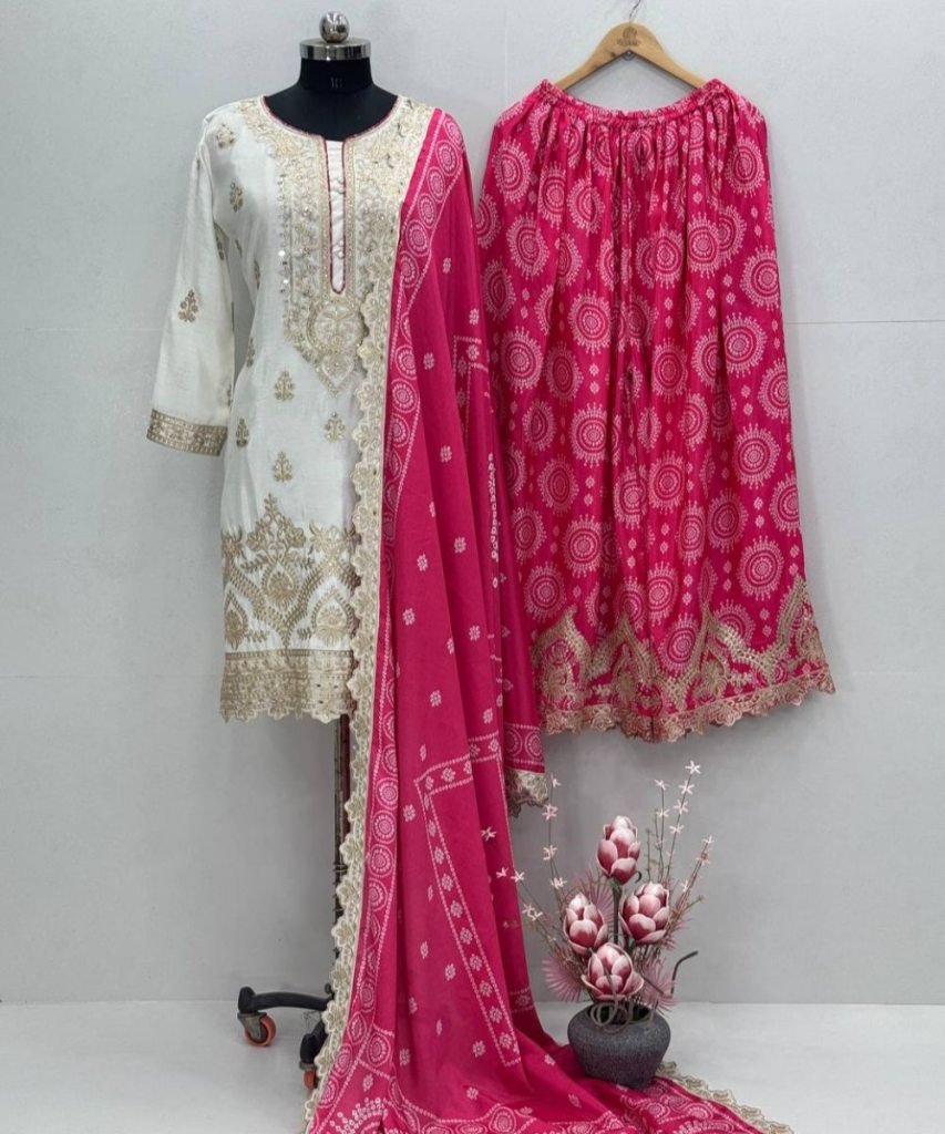 Sharara Work : Digital Print With Embroidered Sequence Coding Work