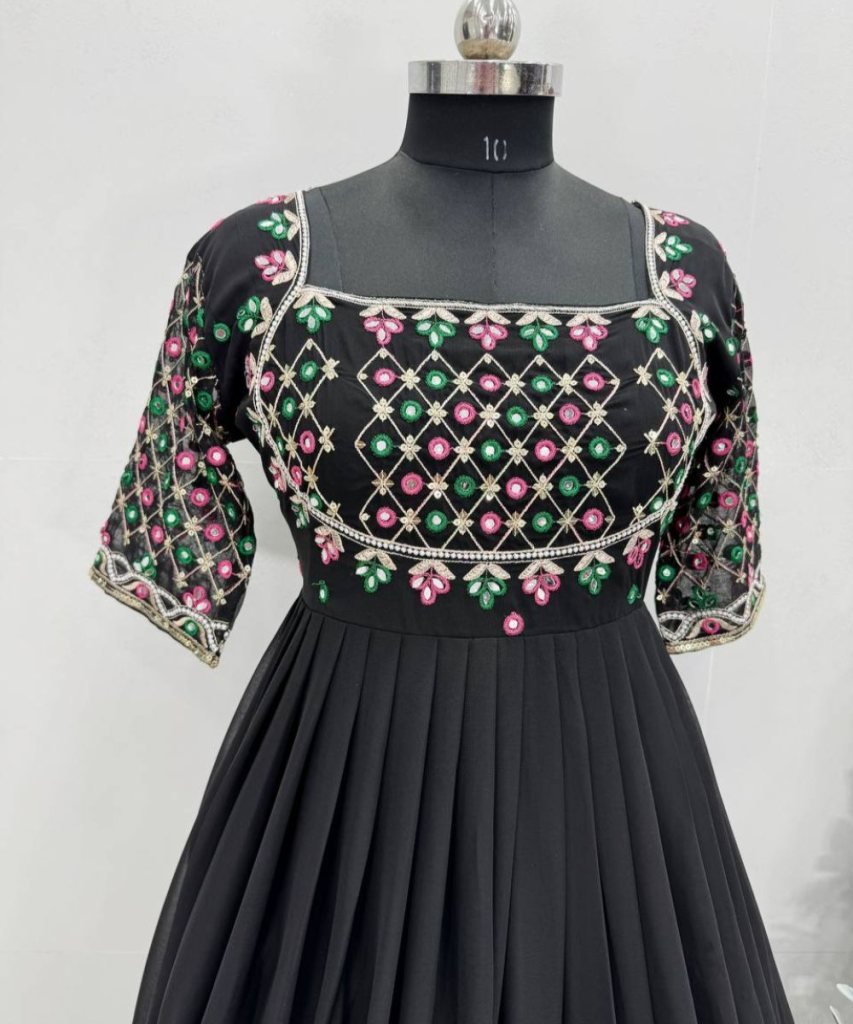Top Sleeves :embroidered Sequences Work With Real Mirror Hand Work