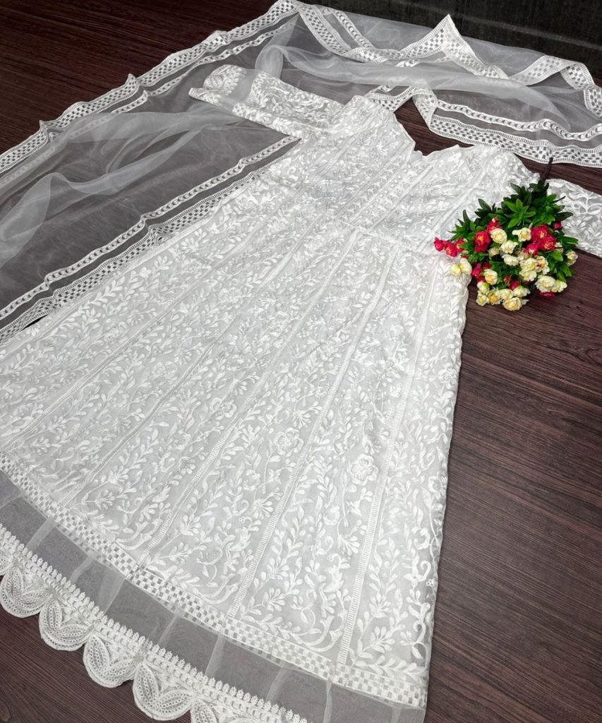 Gown Work : Chine Stitched Heavy Work *( Front And Back Both Side Work )*