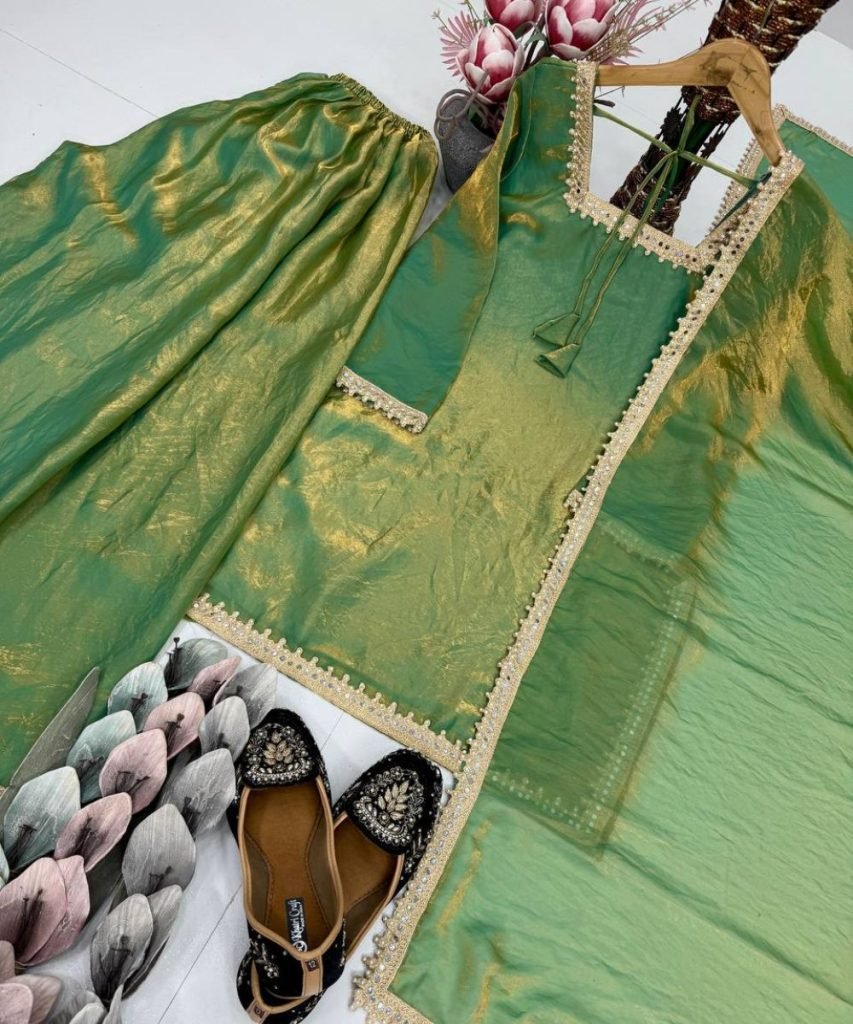 Palazzo Work: Embroidery Coding Work Fancy Lace Bodar With Hend Work