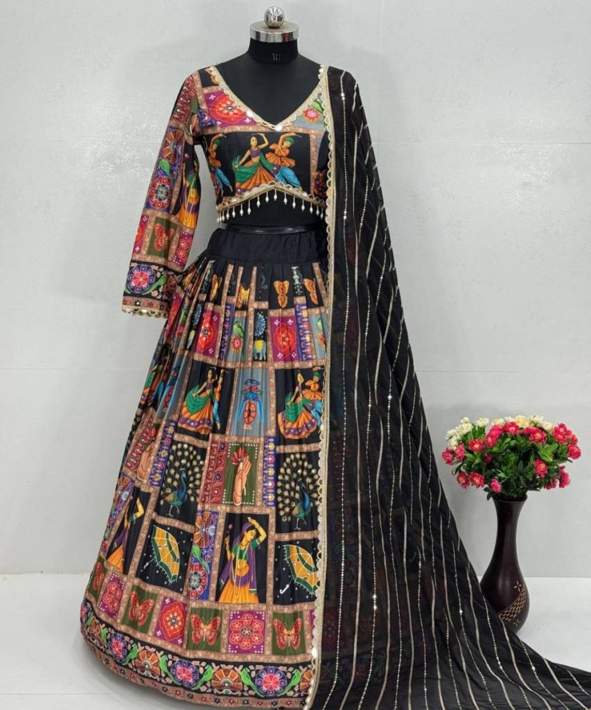 Lehengas Work : Fancy Digital Print With Real Mirror Hand Work