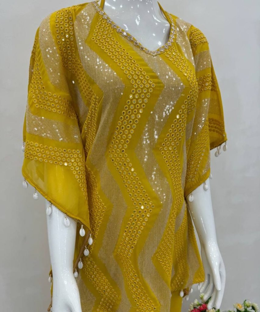 Kaftan Work : Heavy Embroidered 3 Mm Sequins Work With Kodi Less