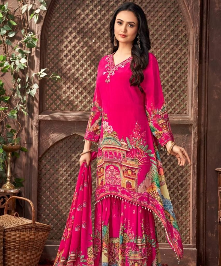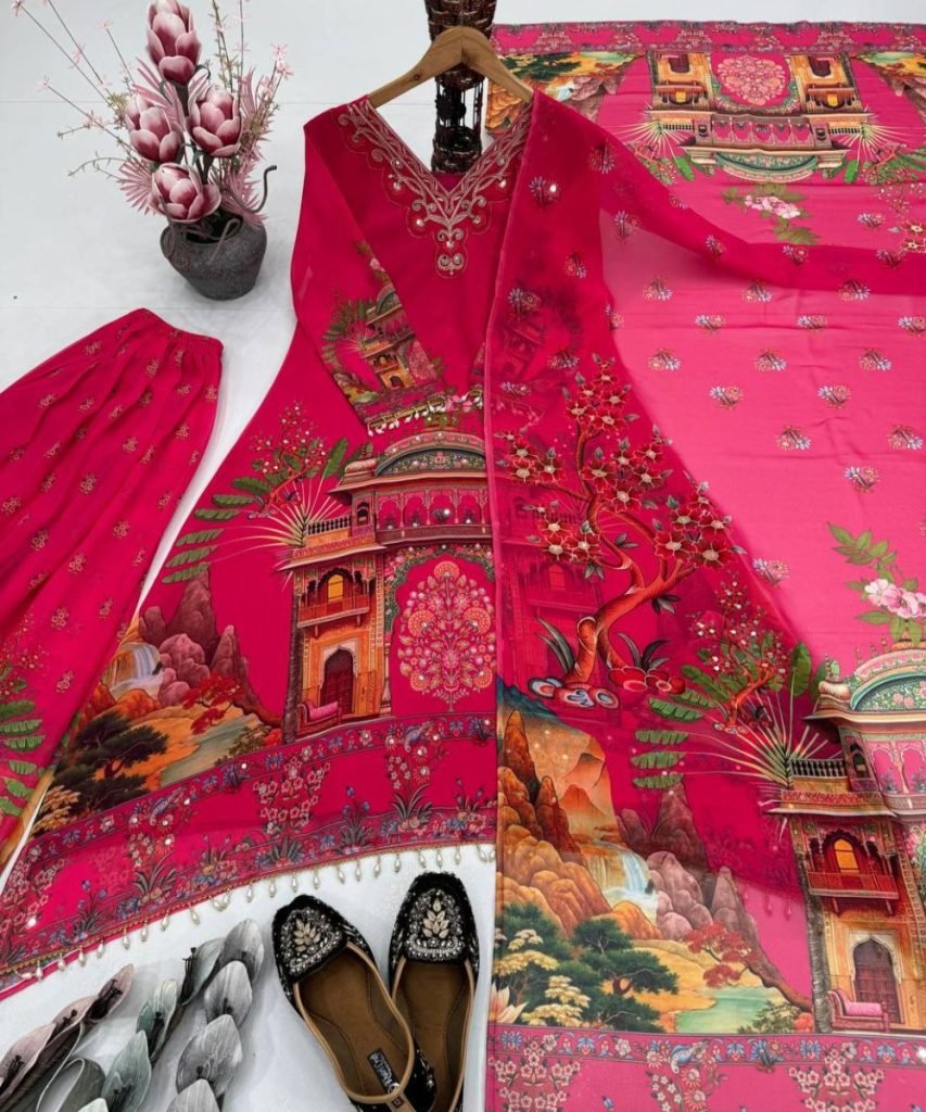 New Designer Heavy Fuax Georgette Digital Print Hand Work Fancy Salwar Suit