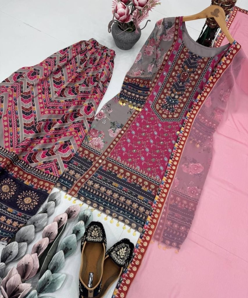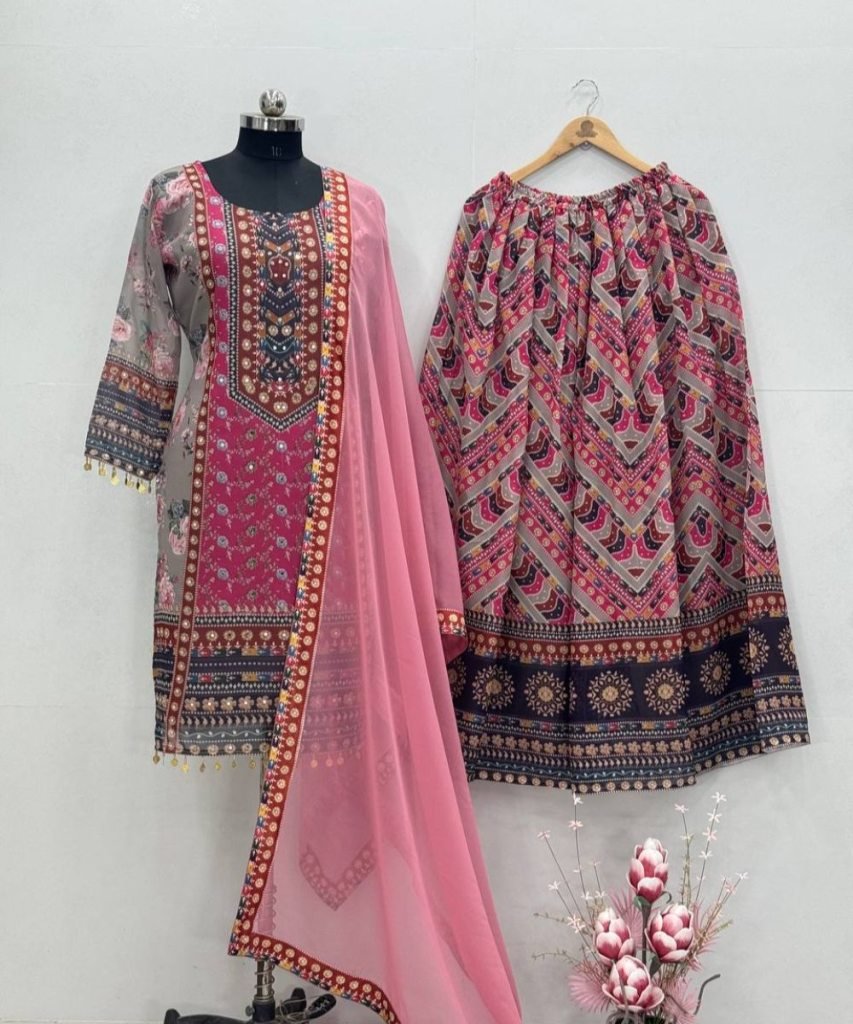 Top Work : Digital Print With Real Mirror Hand Work And Shika Less