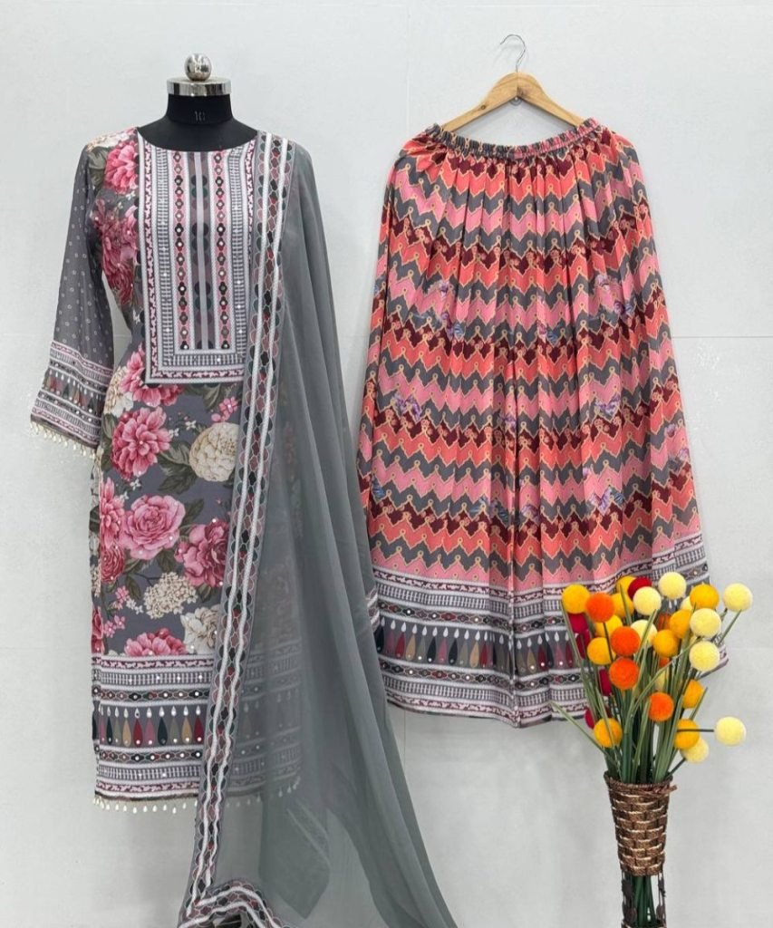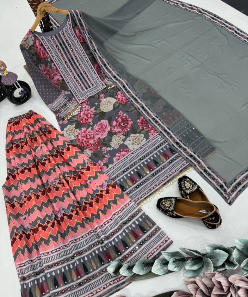 Top Work : Digital Print With Real Mirror Hand Work And Val Less