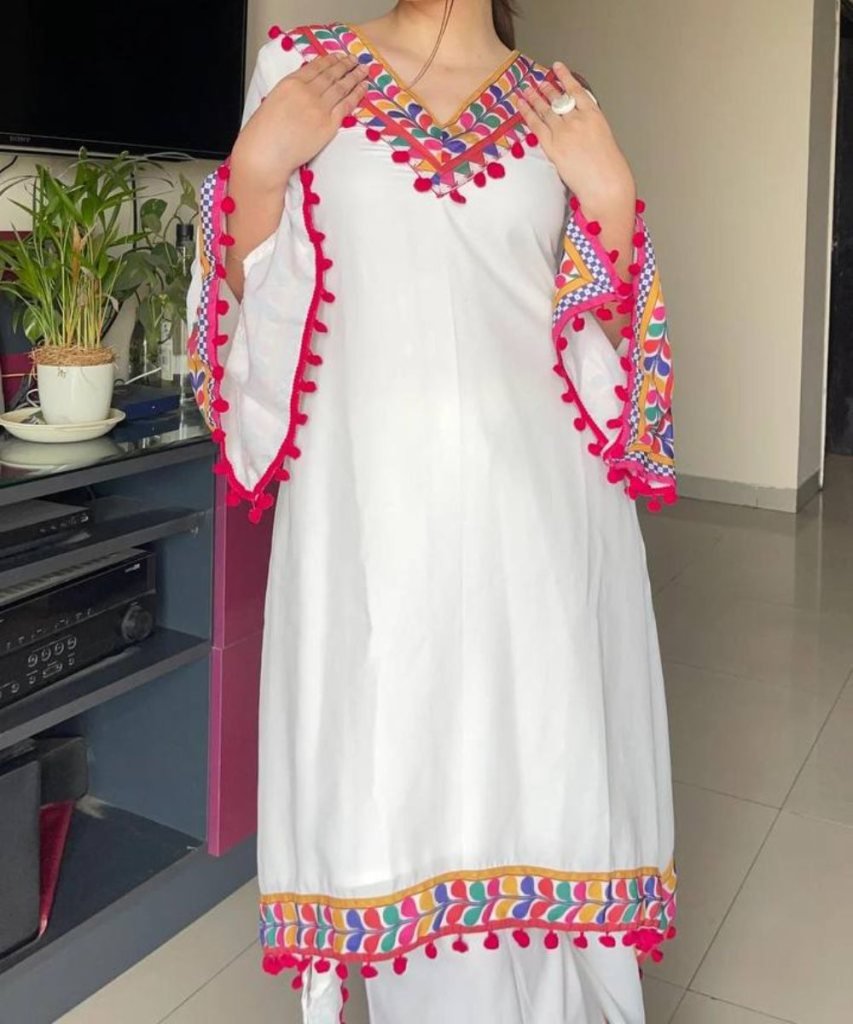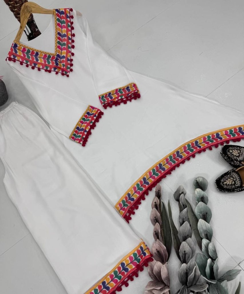 Plazzo Work : Fancy Digital Print With Pum-pum Lace