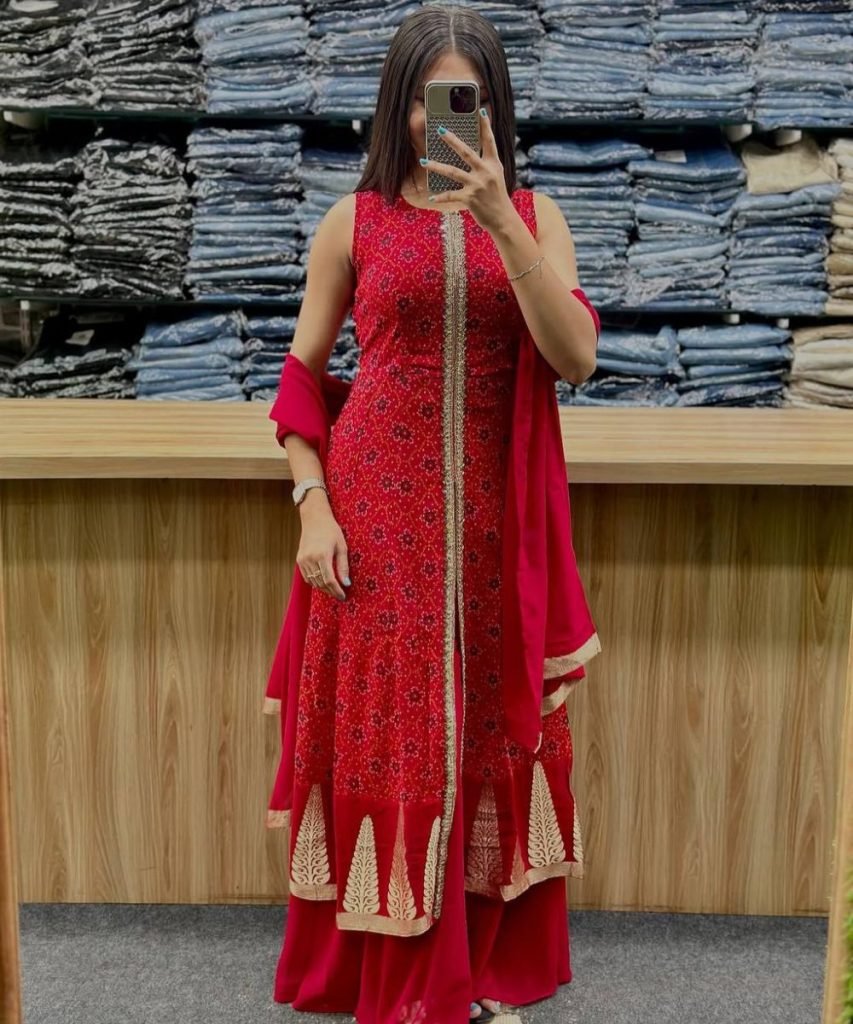 Top Work : Digital Print With Embroidery Work With Real Mirror Hend Work And Can-vas Patta