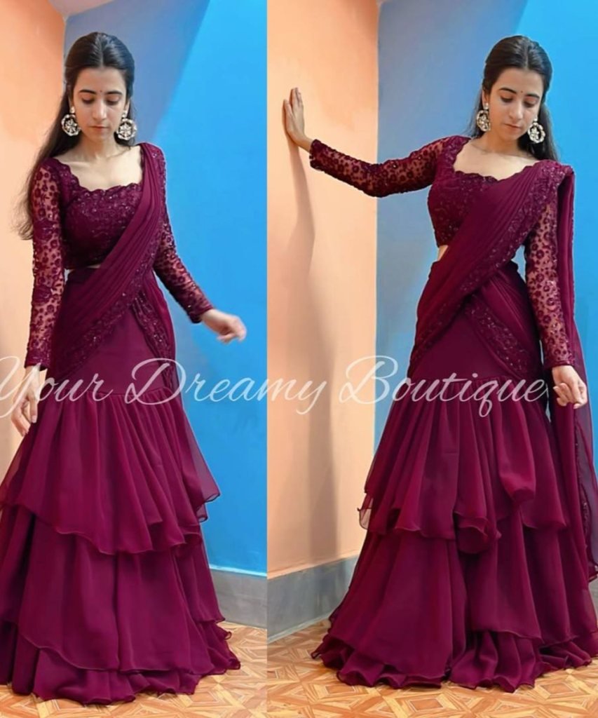 Lehengas Work : Heavy Embroidered Sequins Work With Ruffle