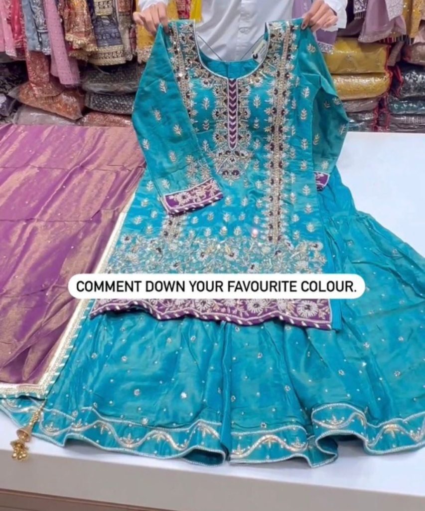 New Designer Heavy Fuax Georgette Sharara Suit Set