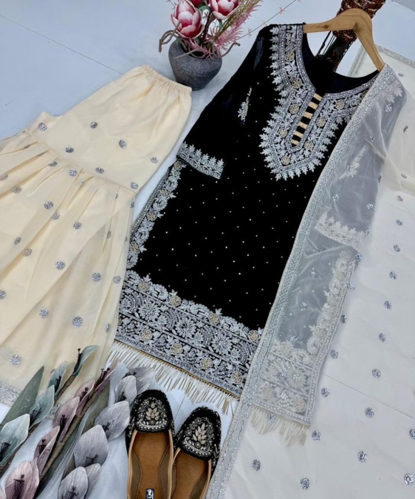 Top Work : Heavy Chine Sequence Work With Fancy Lace And Hand Work