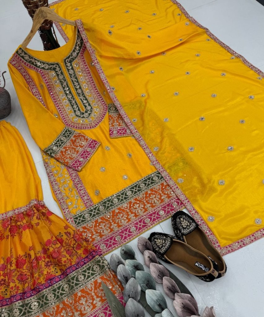 Plazzo Work : Fancy Digital Print With Heavy Chine Sequins Work
