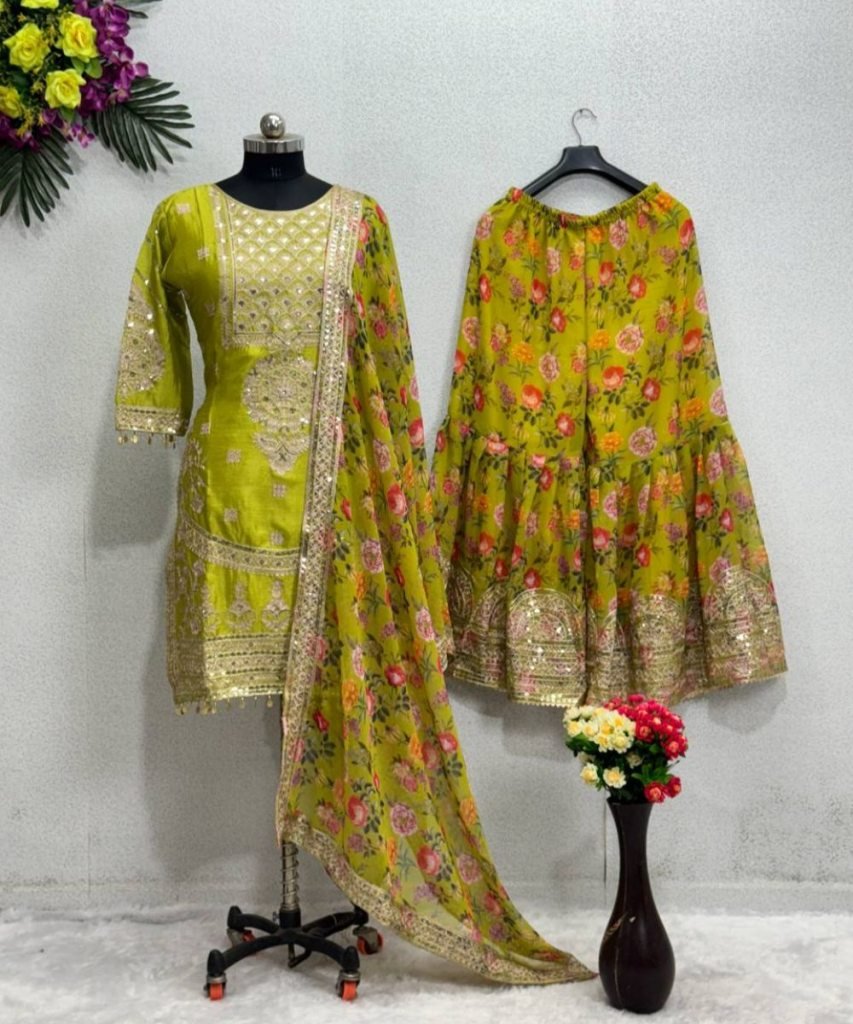 Plazzo Work : Chine Sequins Work With Digital Print And Samosa Less