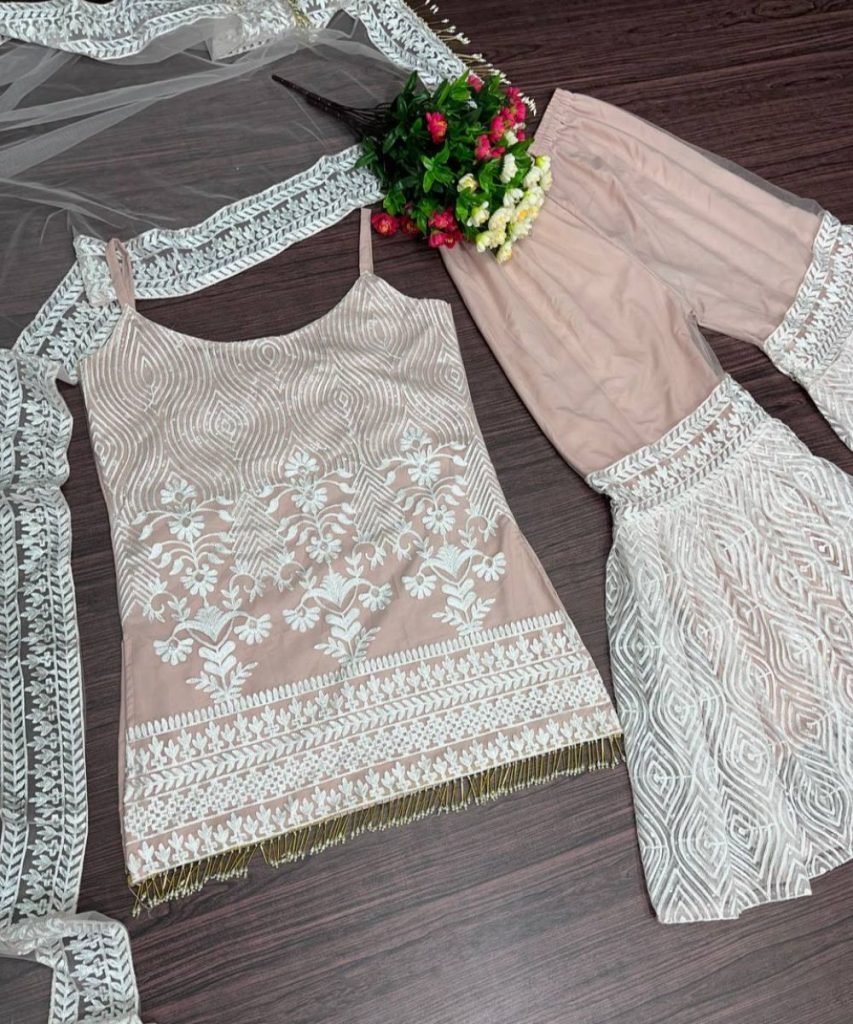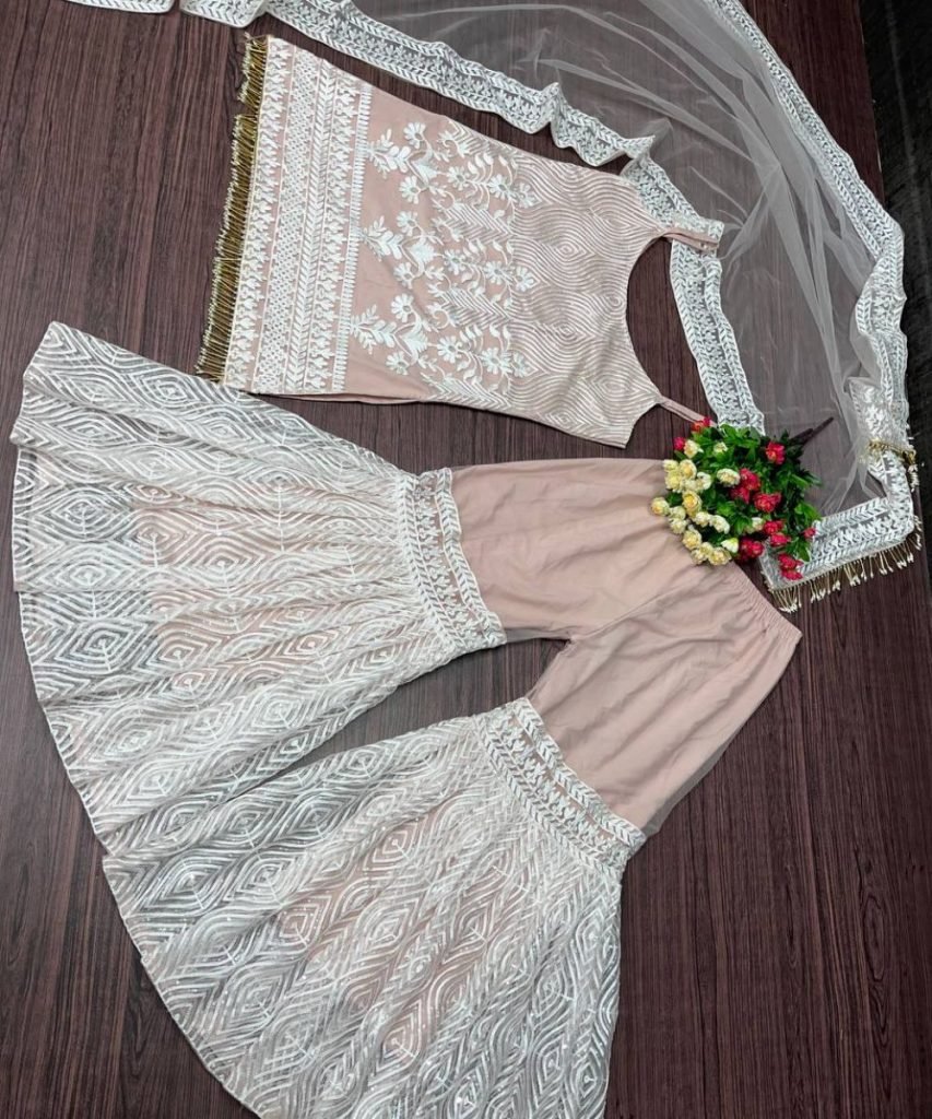 Bottom Fabrics : Soft Netwith Work Ruffle Plazzo