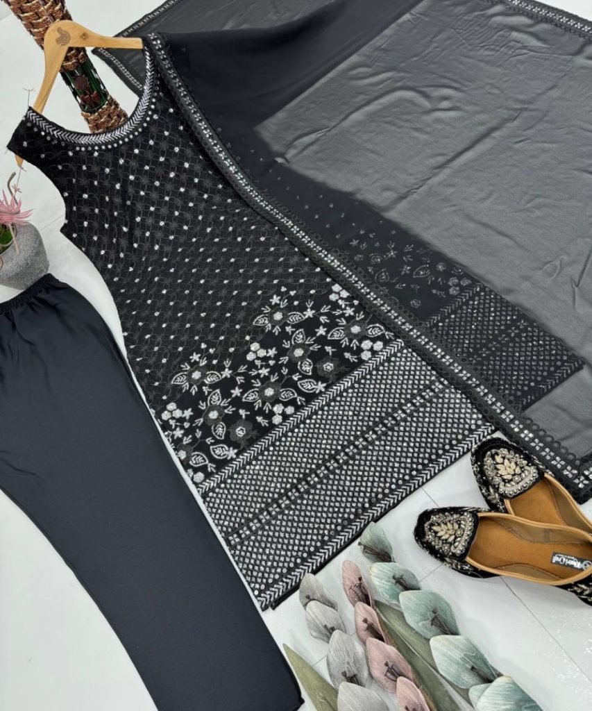 Top Work : Both Side Heavy Chine Sequence With Real Mirror Hand Work