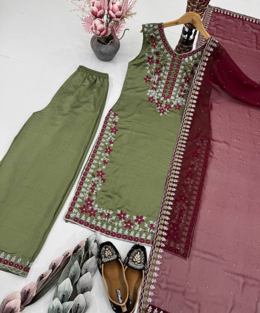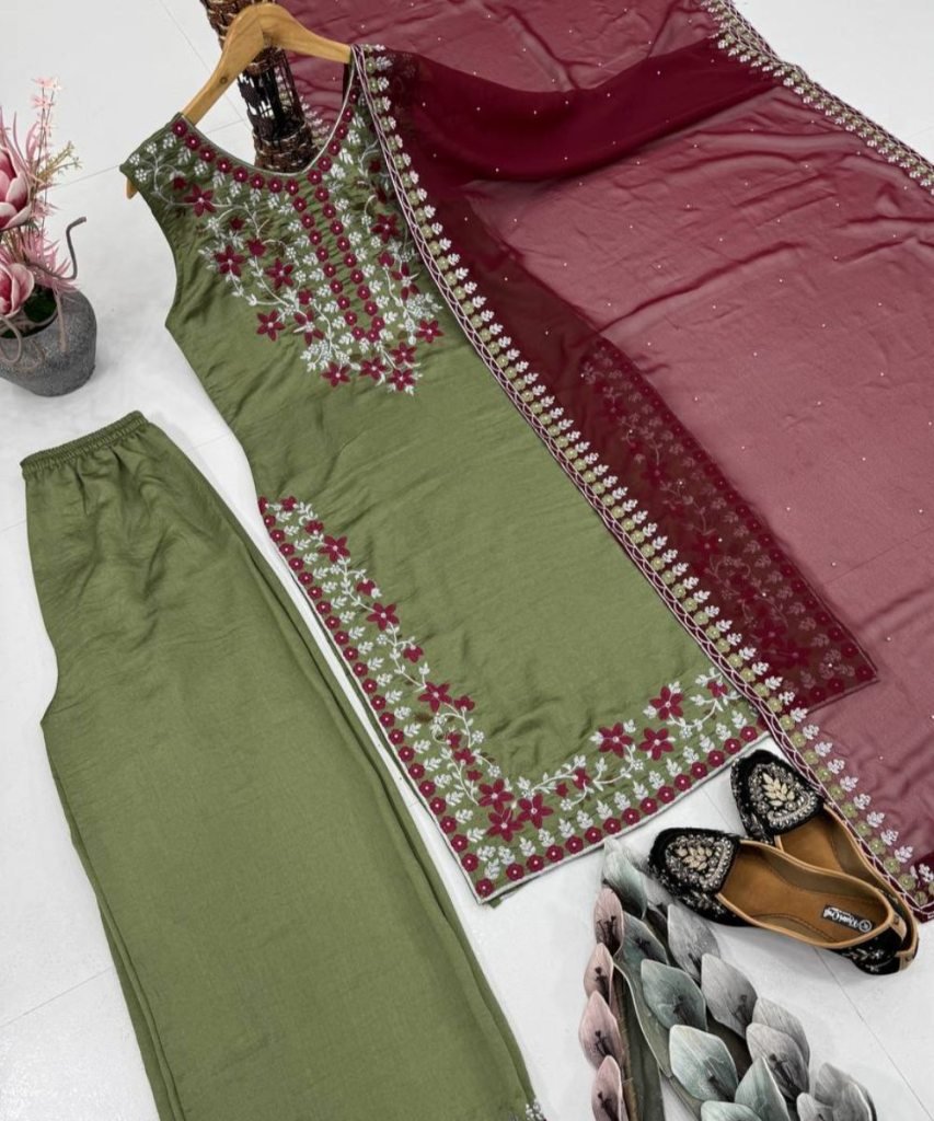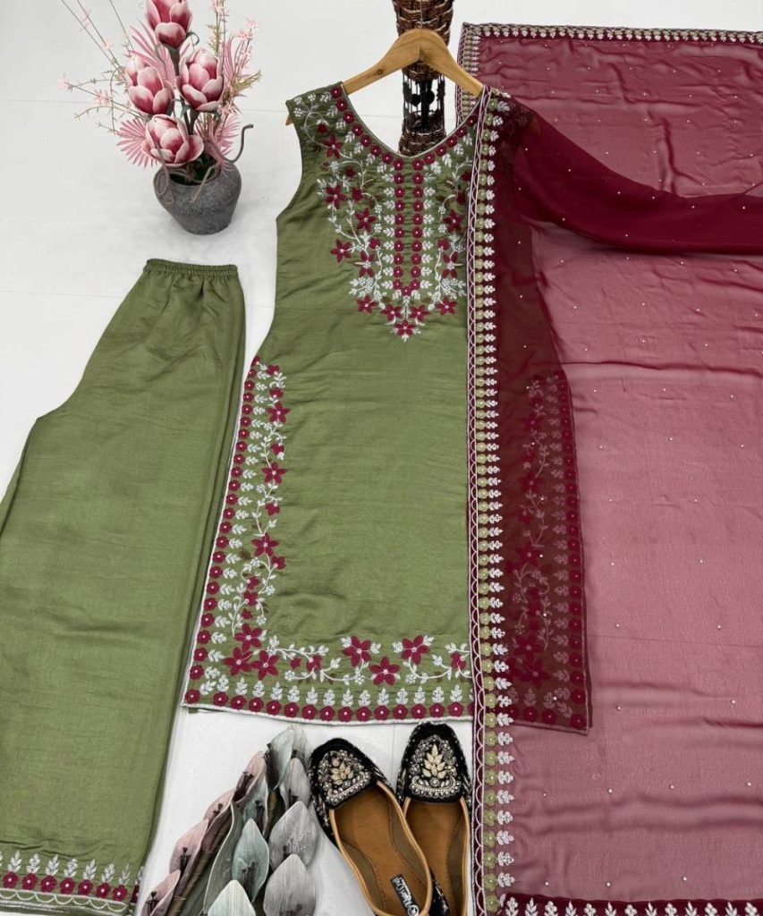 Dupatta Work : Embroidered Sequence Work Less Boder With Peral Hand Work