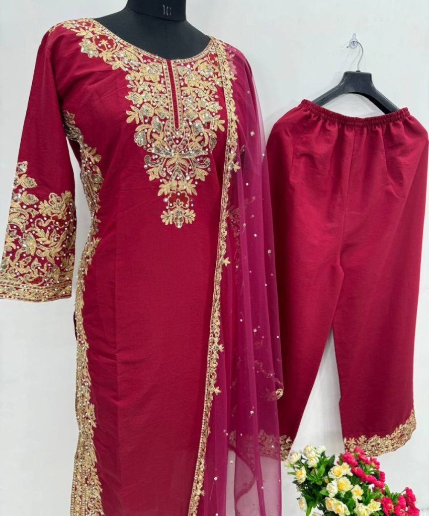 Dupatta Work : Heavy Chine Sequence Work With Hand Work