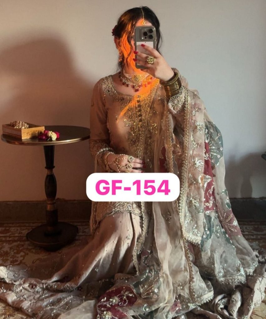 Designer Natural Silk Embroidery Sequence Work Fancy Top Sharara Dupatta Set