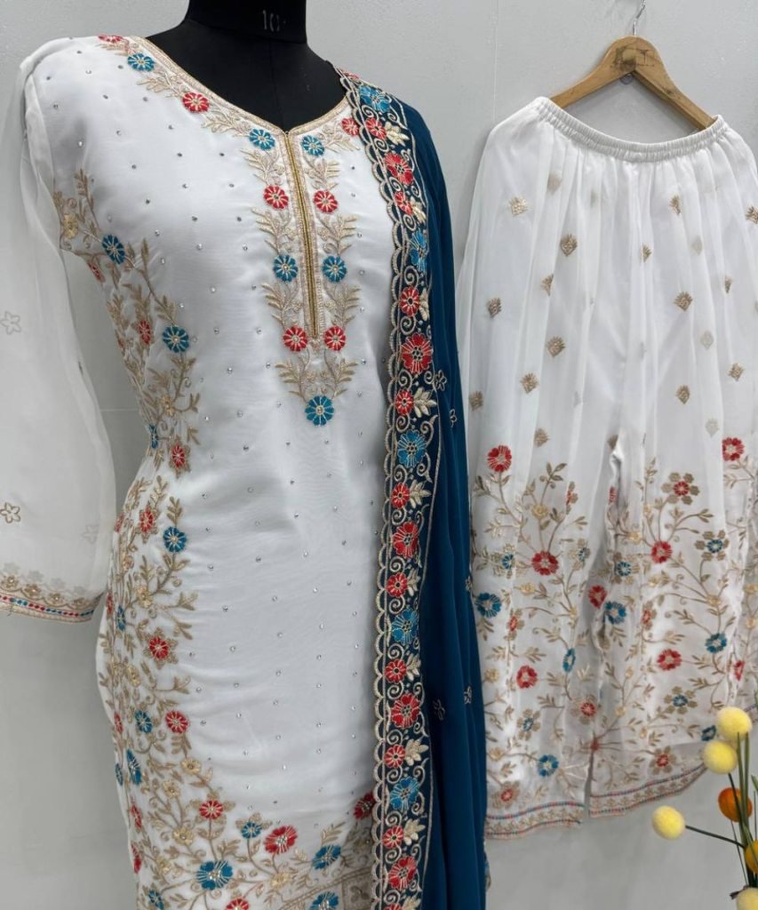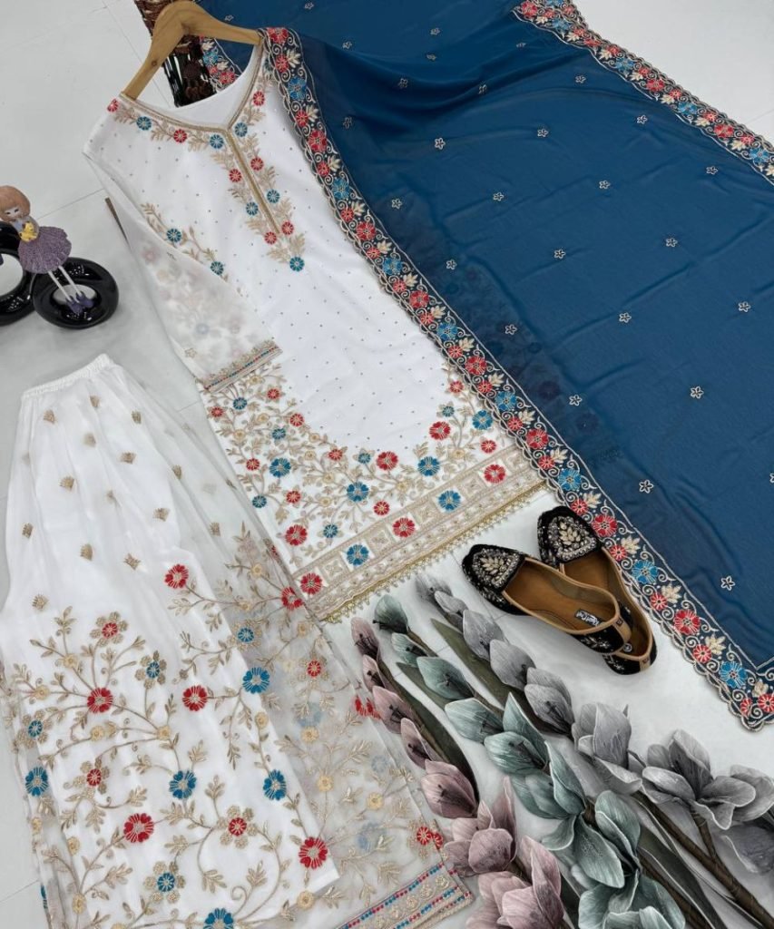 Top Work : Embroidery Sequences Work With Stone Hand Work