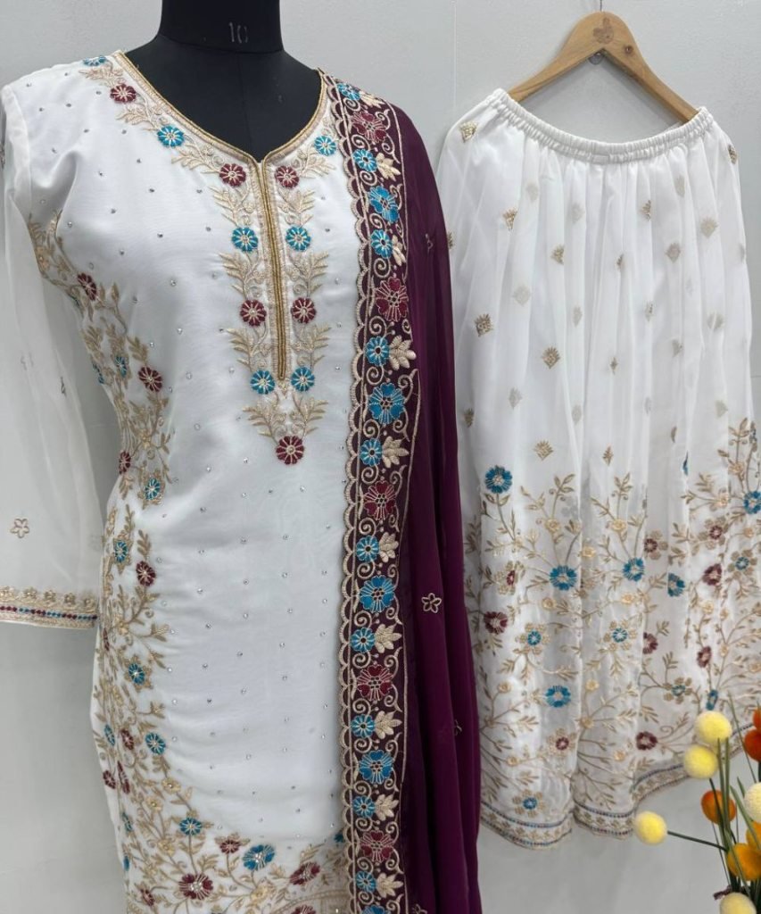 Top Work : Embroidery Sequences Work With Stone Hand Work