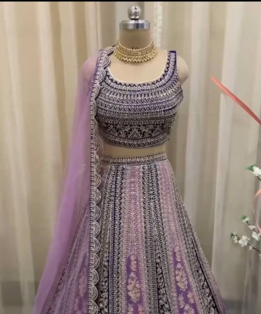Lehengas Work : Heavy Chine Sequence Work With Dimond Hand Work Can-can, Can-vas, 3 Mtr Flair