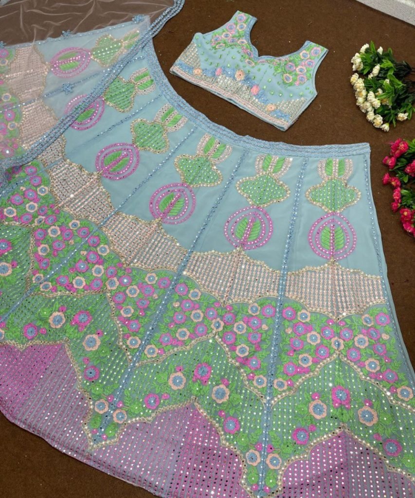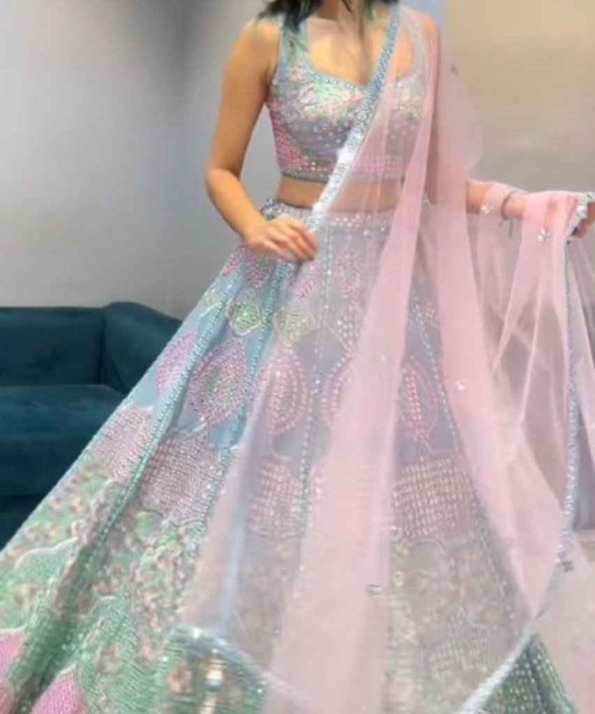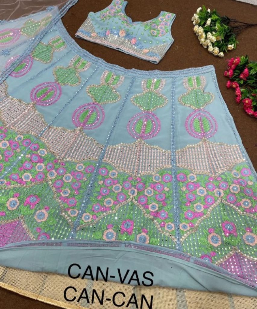 Lehengas Work : Heavy Chine Sequnce Work With Real Mirror Work *3 Mtr Flair Can-vas, Can- Can*